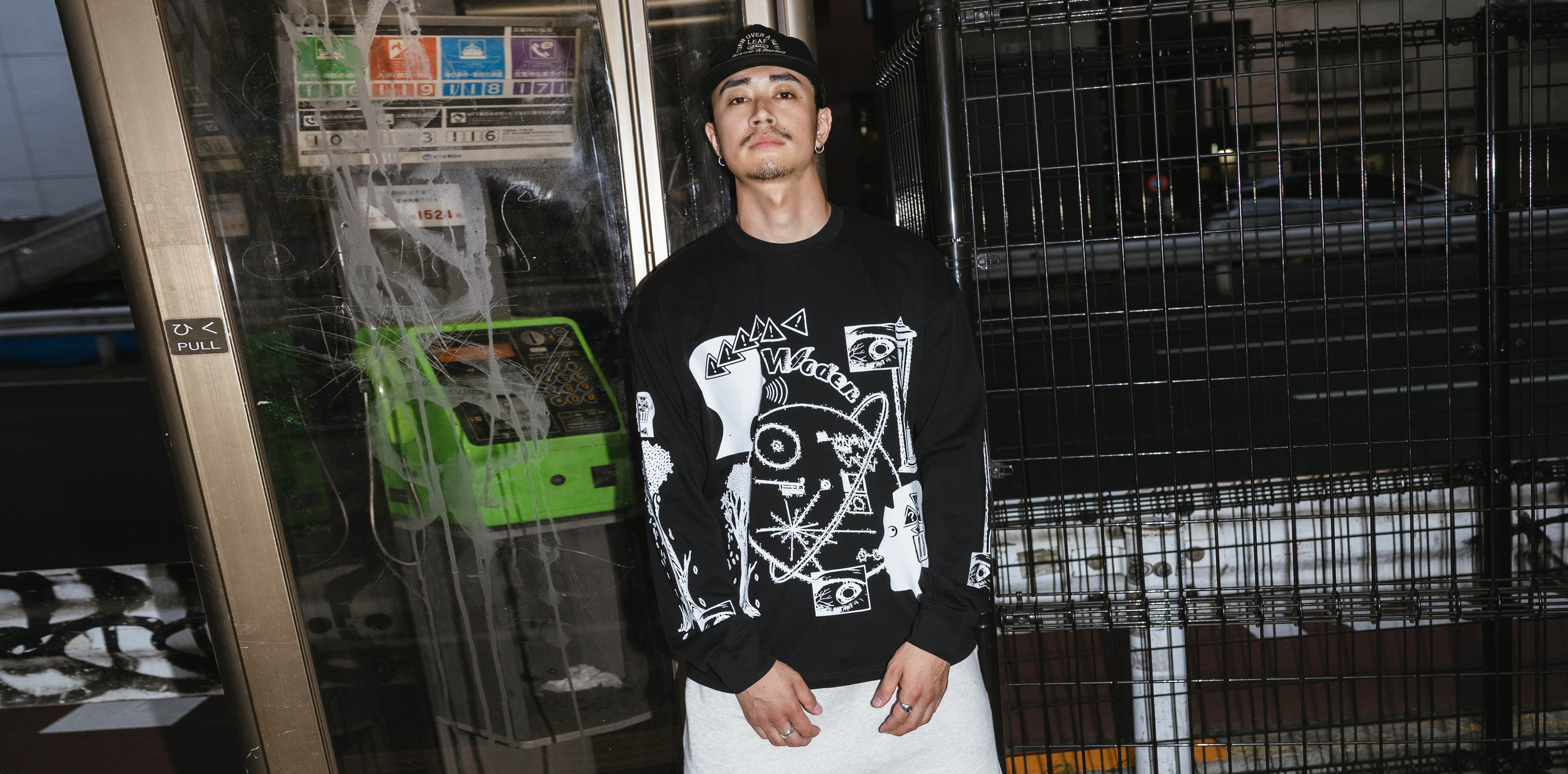此款長Tee以「數位迷失」為設計主題,透過抽象數位圖像組合成圖騰,傳達對資訊爆炸的反思。正面大圖印花結合「人」、「雜點」、「警號問號」、「眼睛」、「數位訊號」等複雜元素,象徵被數位資訊爆炸包圍和隨時被監視的狀態;左右手袖則分別以「沙漏」和「樹木」圖騰作為隱喻,對應著「時間變廉價」與「自然逐漸疏離」的問題。