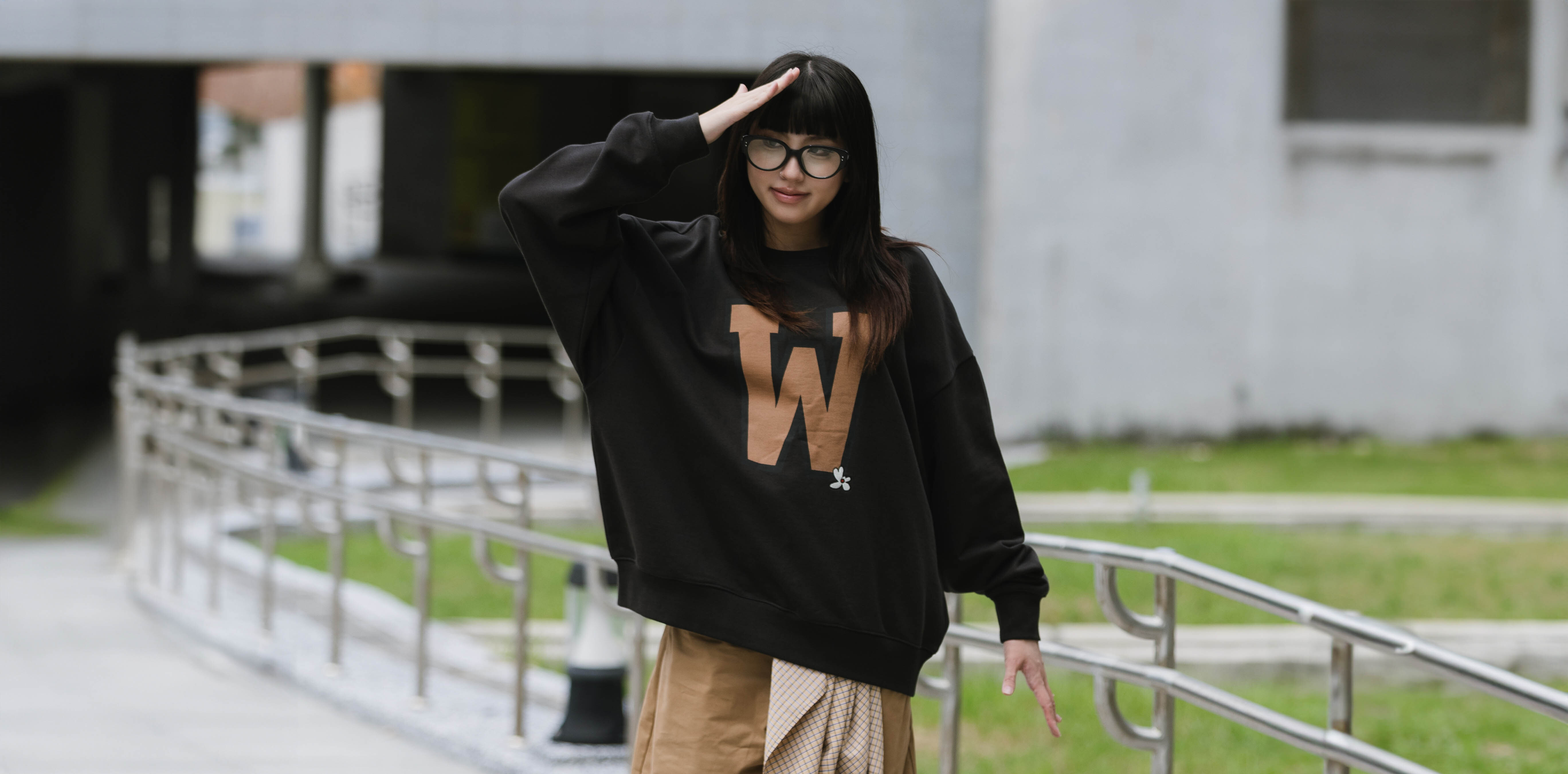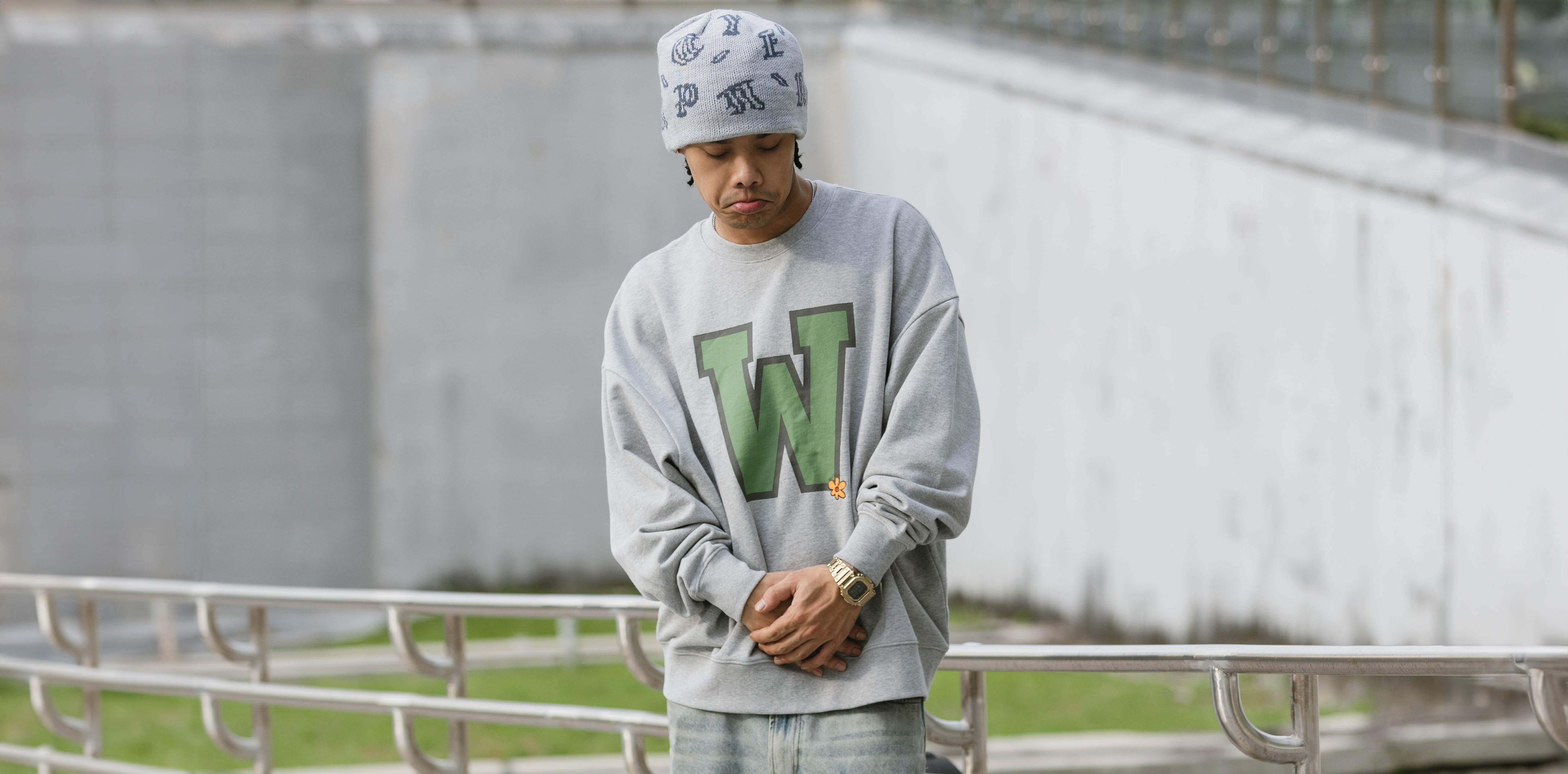 本次大學 Tee 延續經典學院風格設計語言,以胸前大字母Logo 作為視覺主體,結合印花與刺繡工藝呈現。主體字體採 W 學院風格字樣,並於角落點綴小花刺繡,為簡約排版注入趣味與層次。背面則以撞色粗針繡搭配經典羽毛 Logo,呼應前側設計,完整呈現學院氣質與街頭風格的交融。