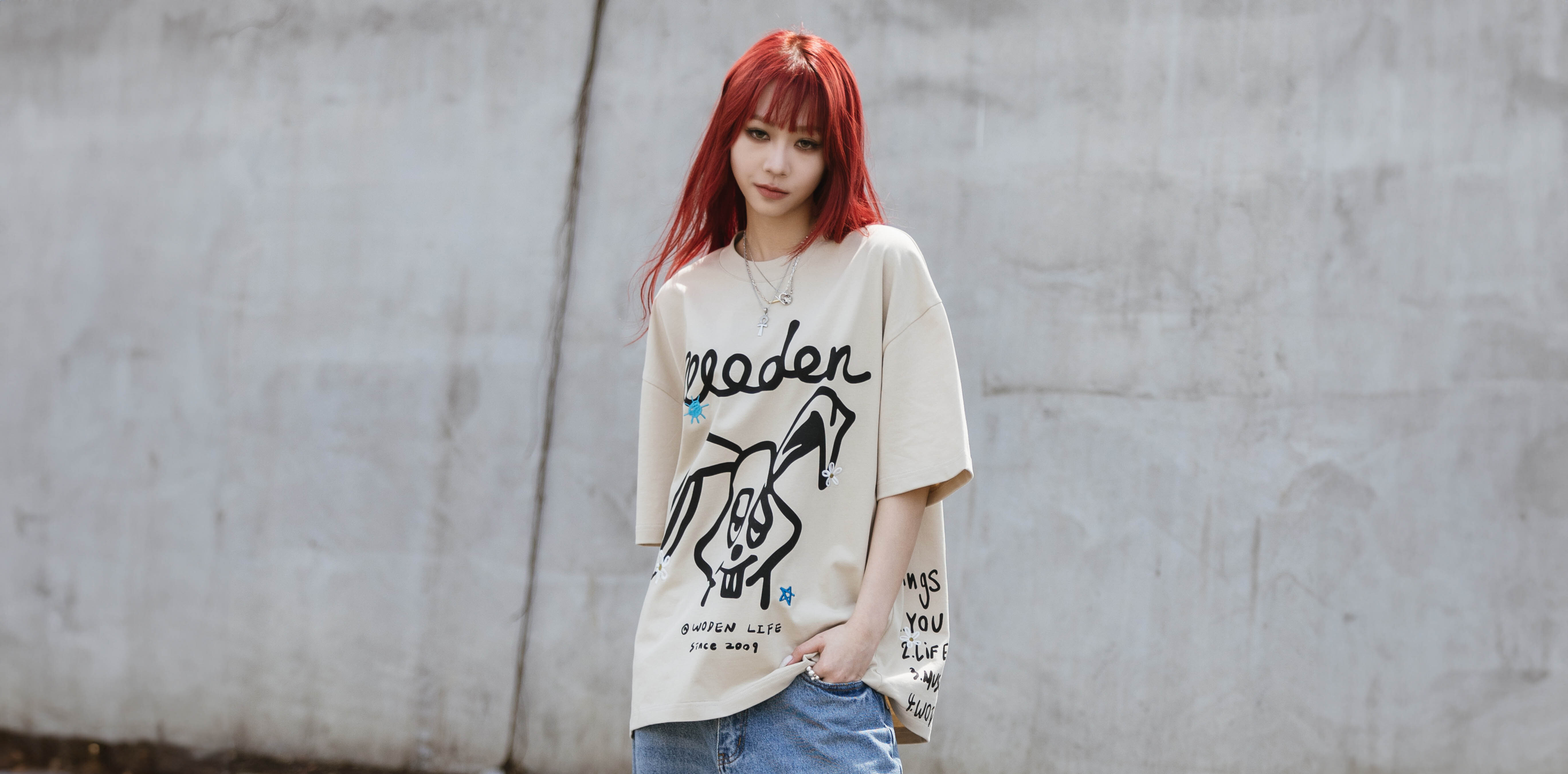 圖像延續街頭塗鴉自由不羈的靈魂,透過幽默中帶點叛逆的圖像語言,呈現「兔子跳得太快,連人生都追不上我」的自由趣味精神。正面圖以塗鴉風格描繪出一隻跳到ㄎㄧㄤ掉的兔子,搭配細緻刺繡的花朵點綴,讓整體圖像更具層次與豐富感;背面則融入手繪塗鴉字排版,並同樣加入刺繡花朵堆疊,完整串聯前後設計。