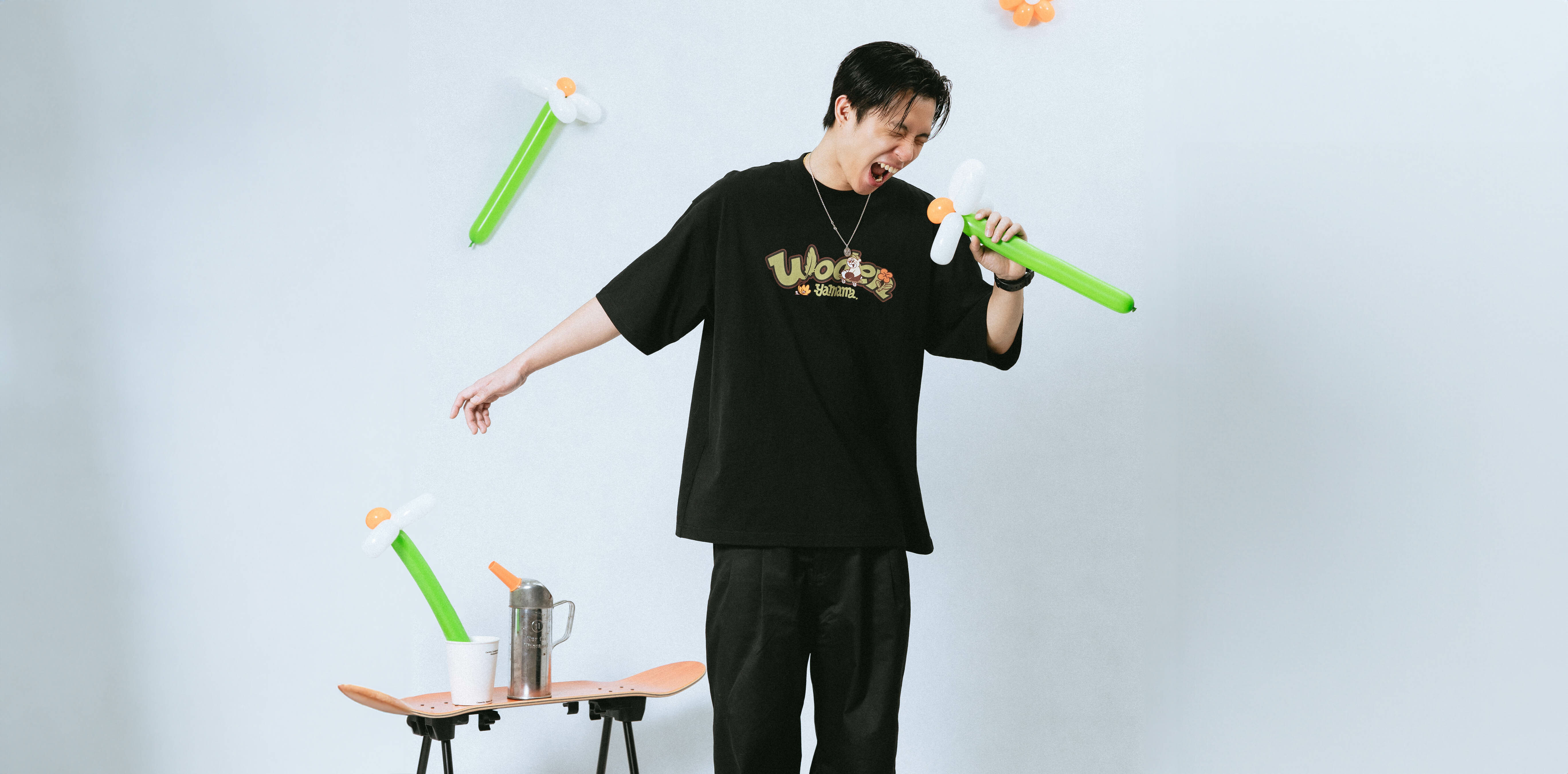 正面設計採用YAMAMA手繪的WODEN字體,搭配各具特色的角色圖像,打造出生動且富有層次感的字體排版,展現了品牌的創意與活力。背面則以素面風格為基礎,下擺處搭配特殊PVC抗撕裂紙標籤設計,並疊加YAMAMA角色刺繡,低調中展現細緻工藝,使整體風格簡約中卻不失細膩感,完美符合日常穿搭的多元需求。