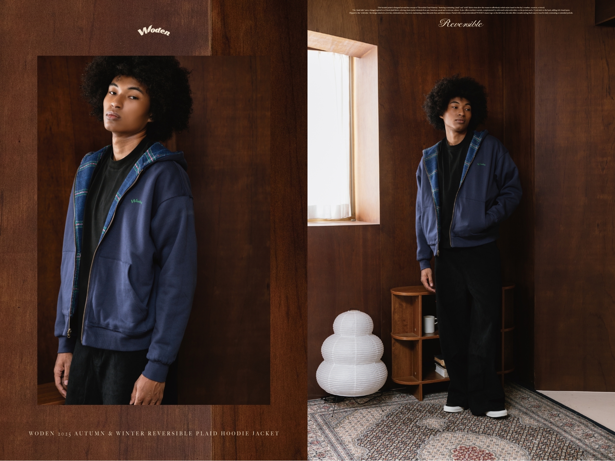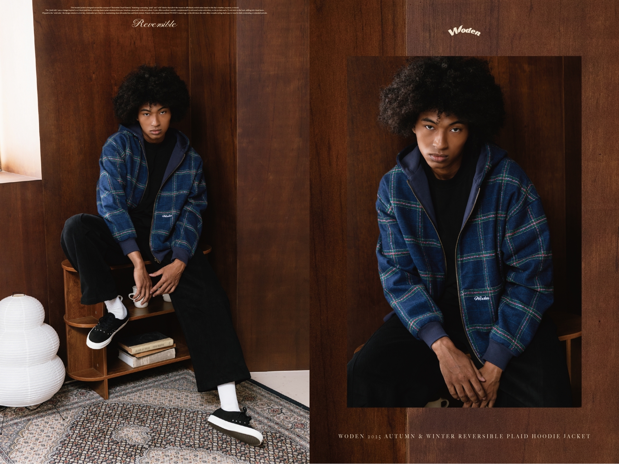 WODEN 2025 Autumn & Winter Reversible Plaid Hoodie Jacket