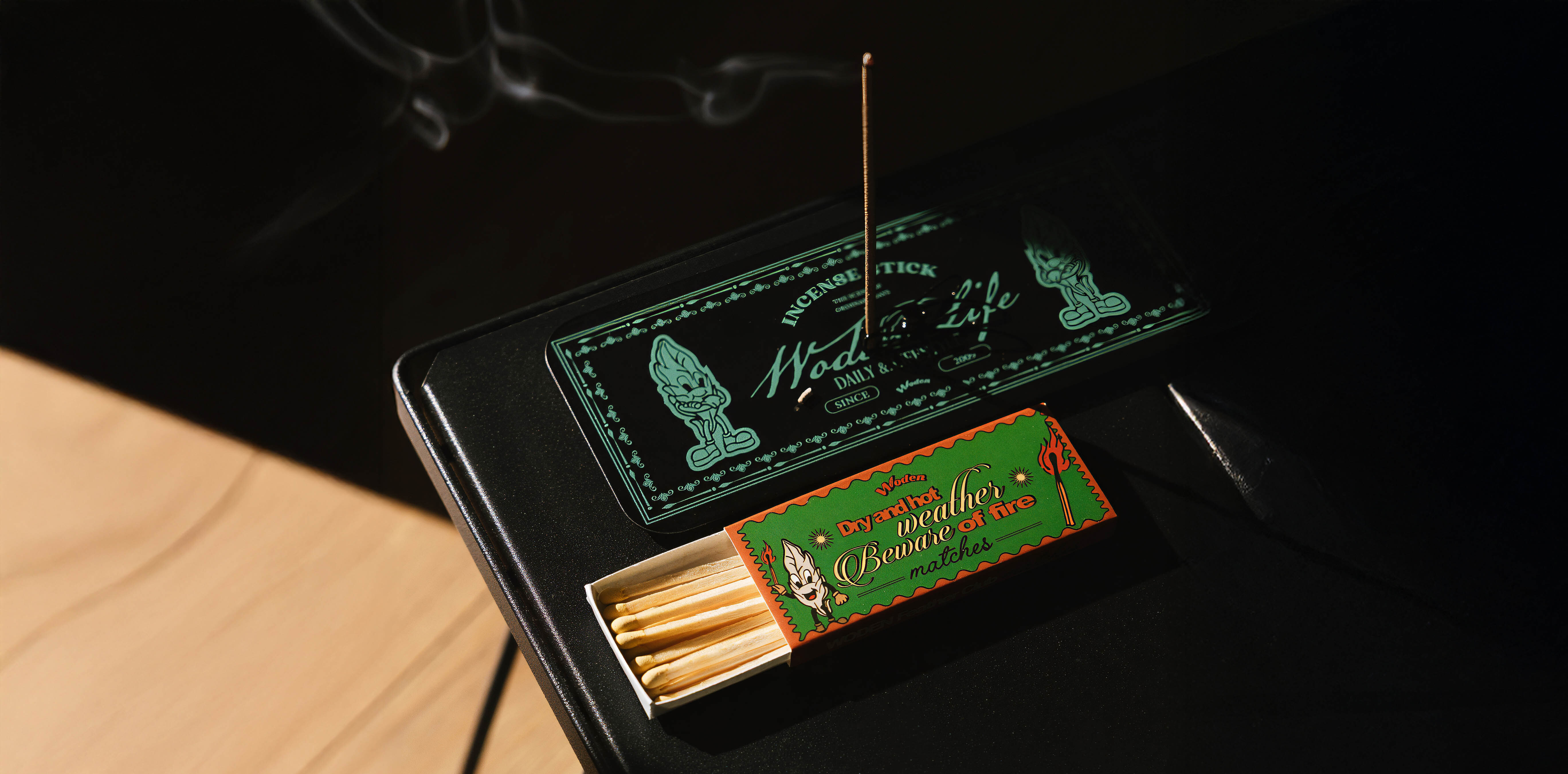 搭配訂製 WODEN 鐵盒與專屬火柴盒,當下班回家、點燃線香的那一刻,在儀式感展開之後,緩緩回到屬於自己的平靜與放鬆。