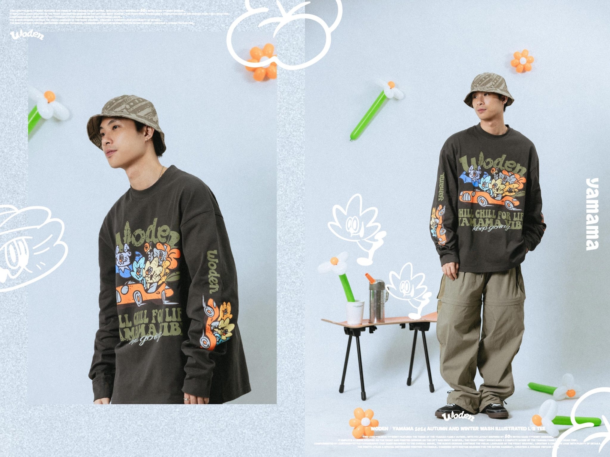 本季再次攜手台灣插畫家 YAMAMA,延續其獨特的插畫風格,並融入 WODEN 經典的復古元素。兩種截然不同的風格相互融合,展現 YAMAMA 創作的嶄新面貌。