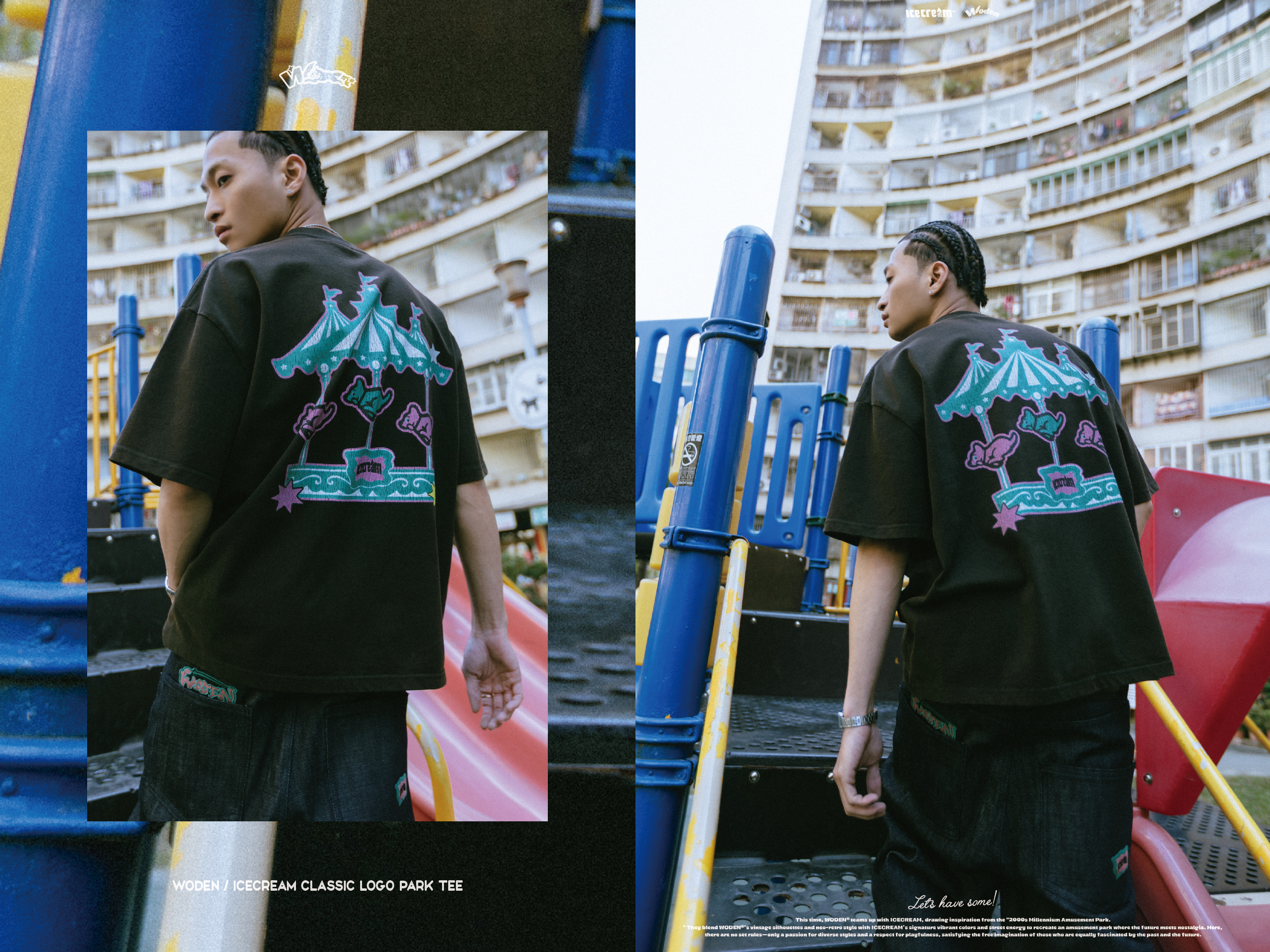 本次 WODEN® 與 ICECREAM 攜手合作,以「2000 年代千禧年遊樂園」為靈感,將 WODEN®的復古輪廓和新古著風格,融合 ICECREAM 標誌性的繽紛色彩與街頭能量,重構一座未來和懷舊交融的遊樂園。這裡沒有既定規則,只有對多元風格的偏執、對玩心的尊重,滿足同時迷戀過去與未來的自由想像。