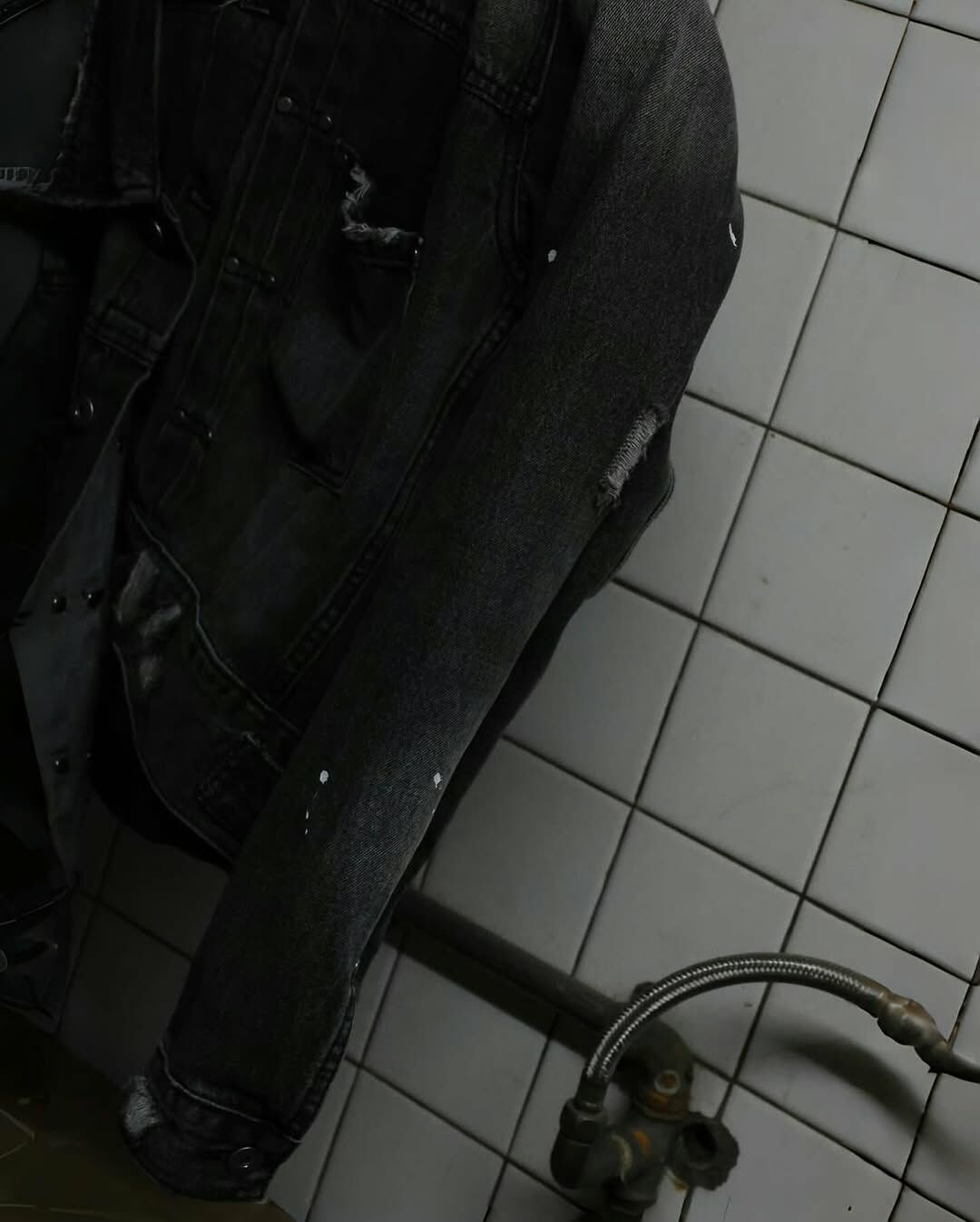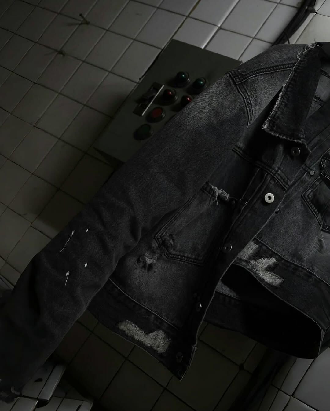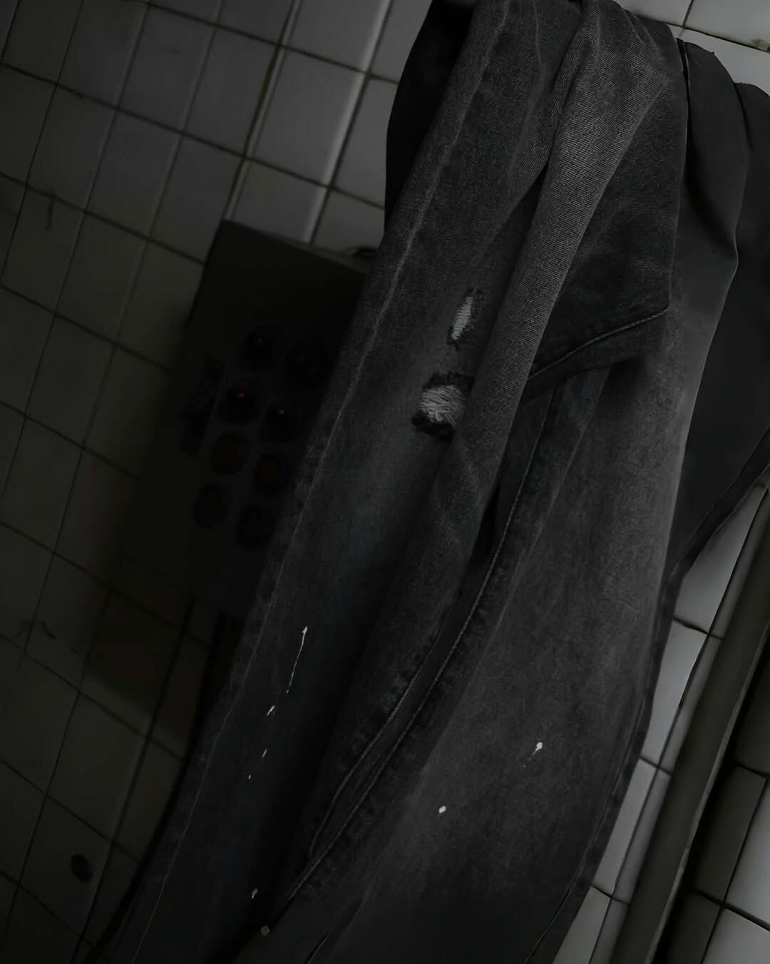 外套的多處破壞細節  包含袖口、下擺與口袋