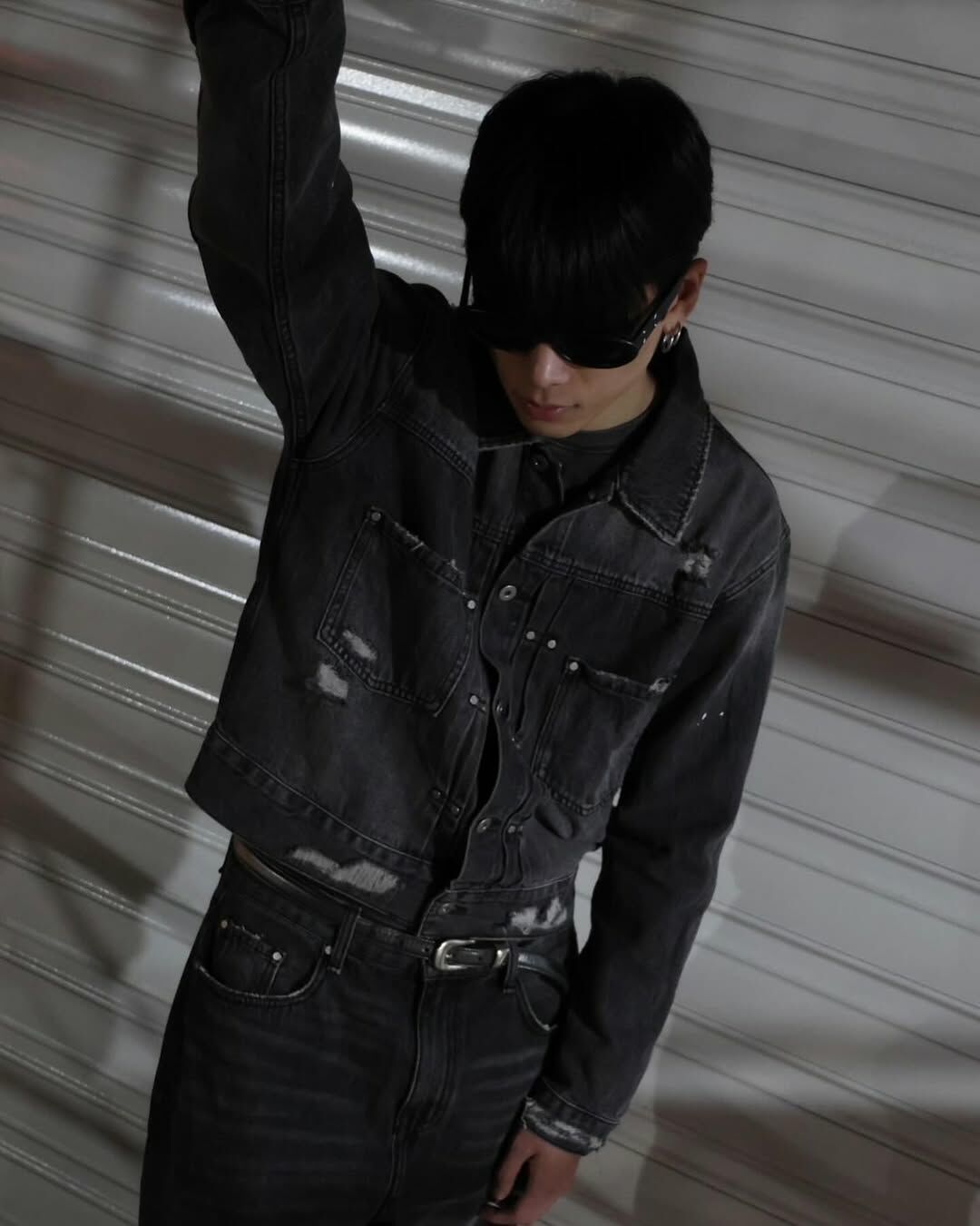 左右兩側的上下打摺設計靈感來自於早期牛仔工作服中的立體剪裁工藝