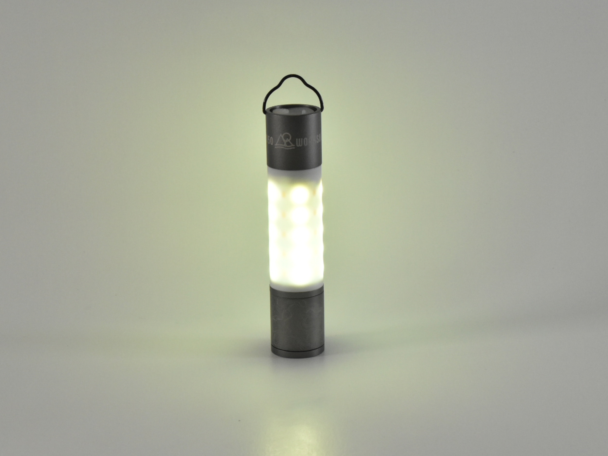 シチュエーションに合わせてハンディライトにもランタンにもなるLEDライト。