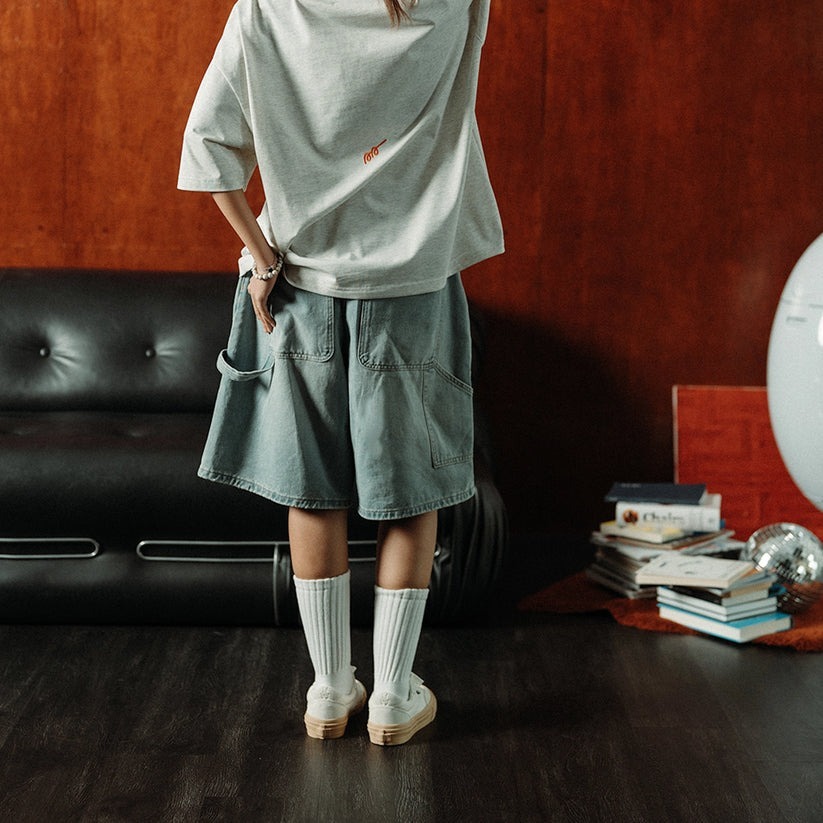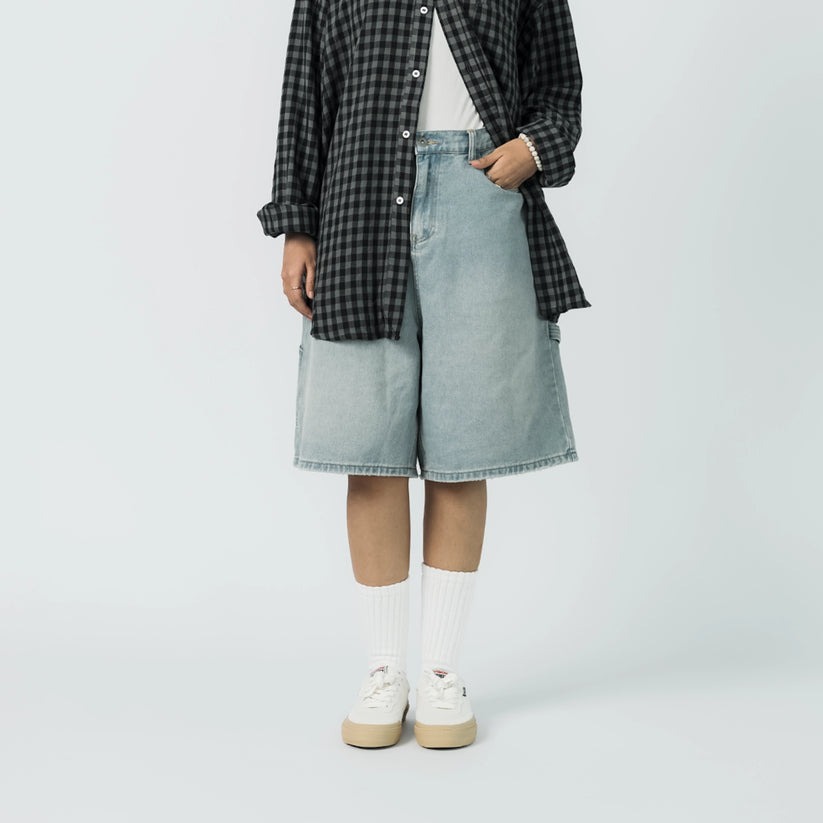 這款輕盈水洗短褲採用寬鬆版型,配有工具環細節、超大後袋和鬆緊腰帶,帶來全天舒適穿著體驗,是您滑板、工作室活動或陽光下放鬆身心的理想之選。