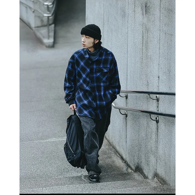 B-SIDE ASYMMETRICAL CHECKED SHIRT