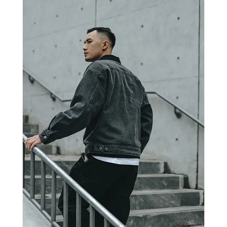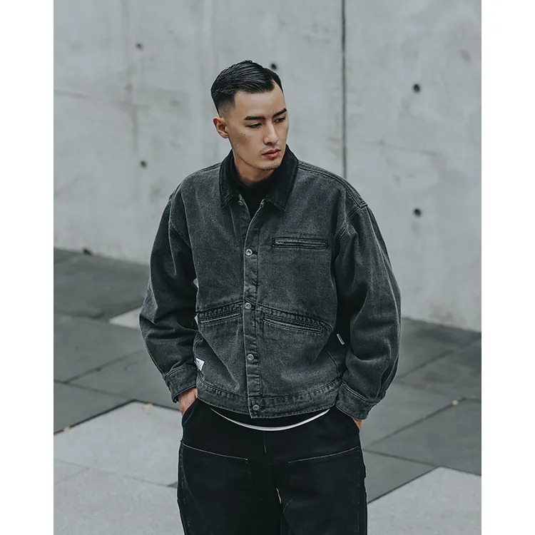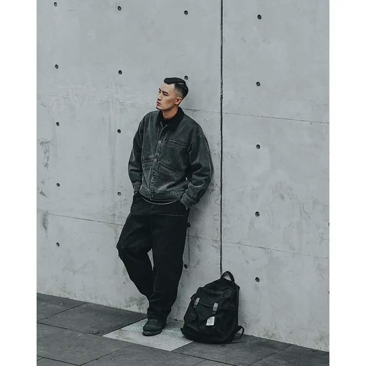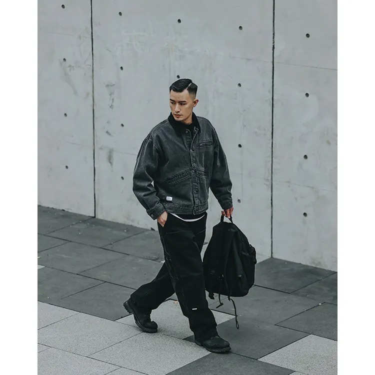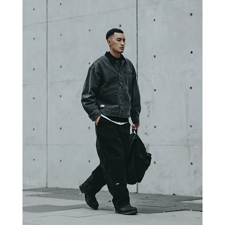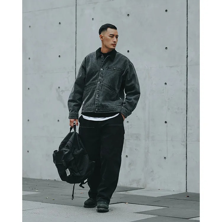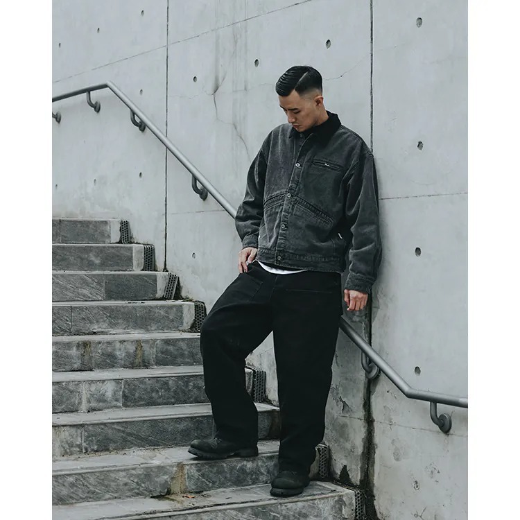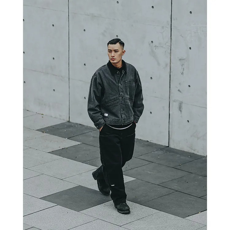 版型寬短好處多。可作為深冬寒冷洋蔥式穿搭的中層運用,也能在冬末微涼時作為單穿外套。而透過重度舊化的單寧面料以及領口與袖內局部燈芯絨的灰黑冷調配置,除了添加視覺層次保有復古氛圍,也輕鬆在穿搭色調上兼容當代。