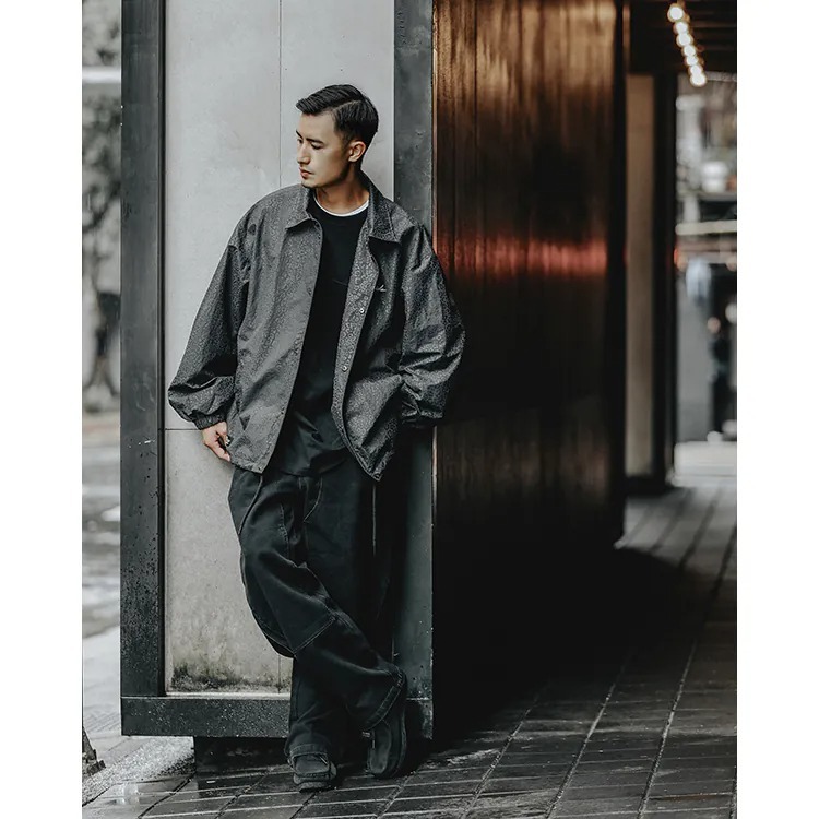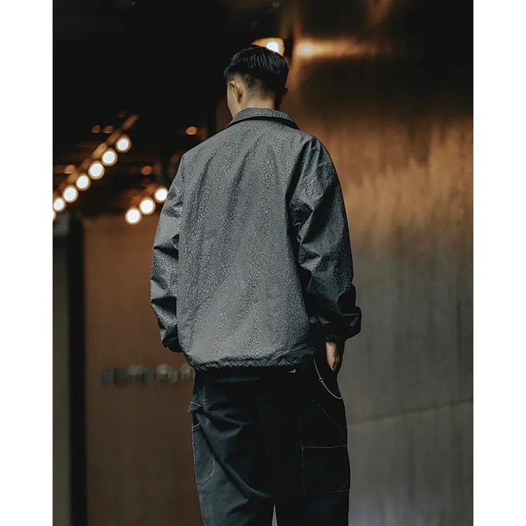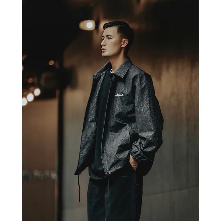 縮小結構後的豹紋組織,大幅降低了第一眼的繁雜視覺,而同色階黑灰兩色刷選用,也跳脫了原色自然豹紋穿搭難度較高的刻版印象,同時合理接軌當代街裝的洗鍊穿搭設定,完整呈現BS品牌簡約低調卻也注目的品牌視角思維。