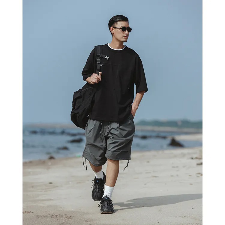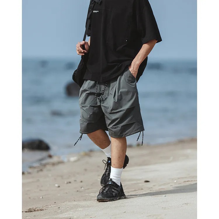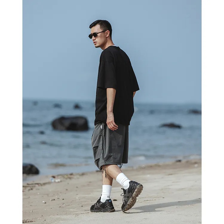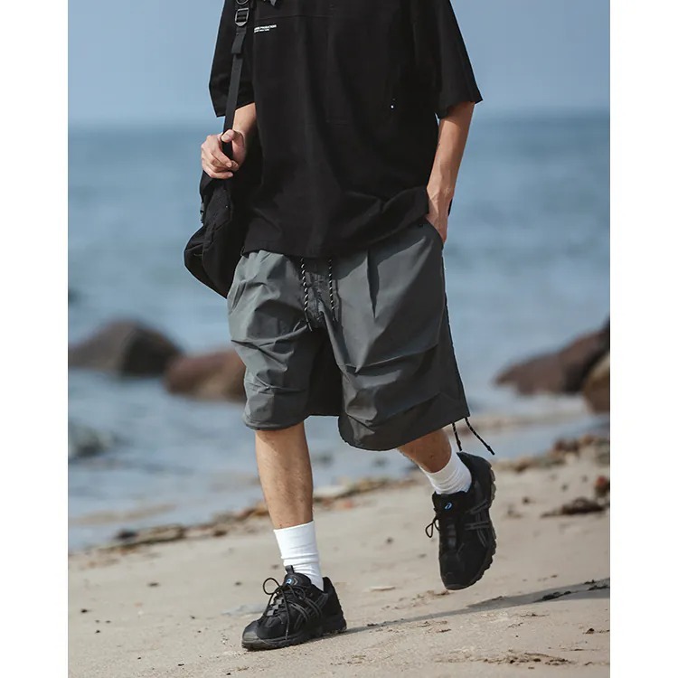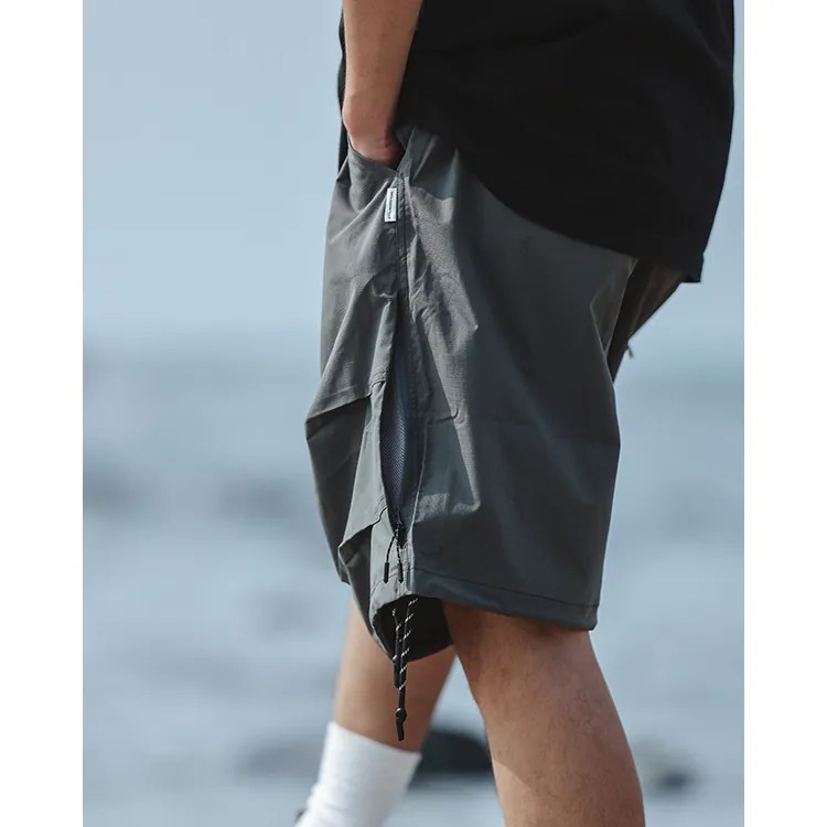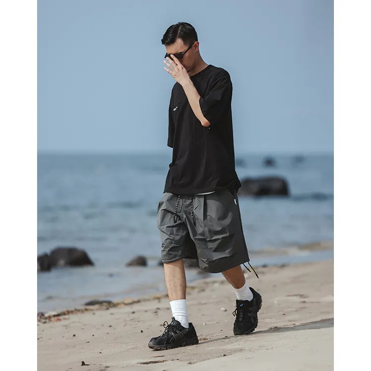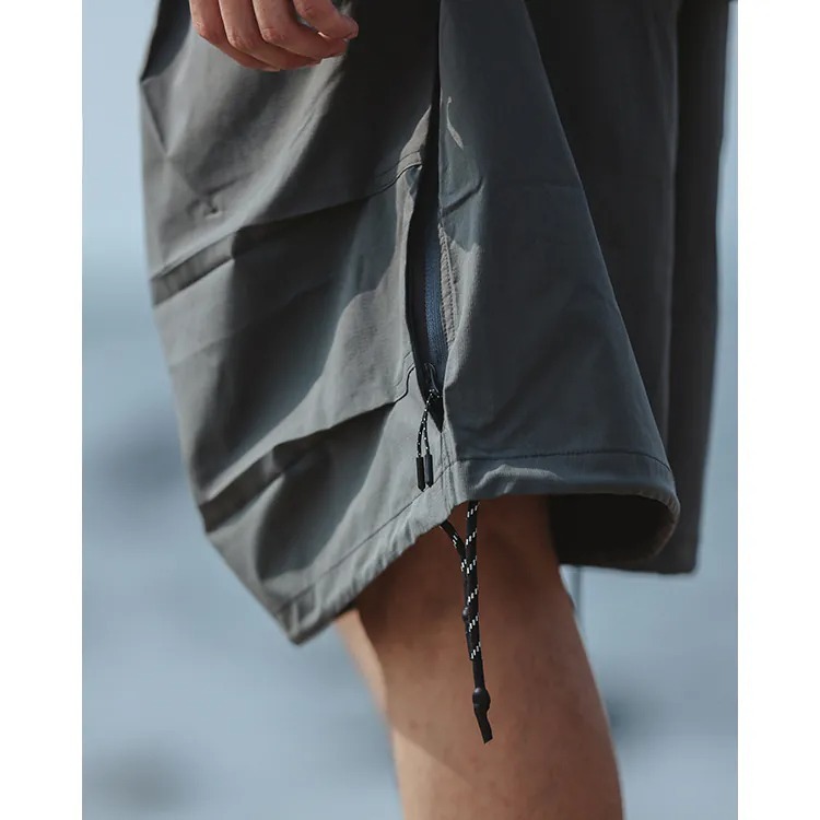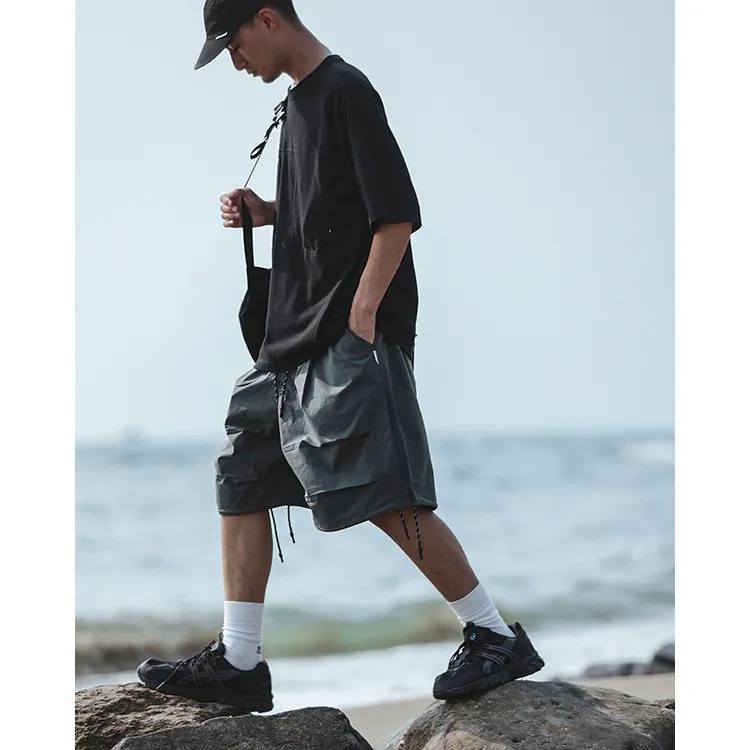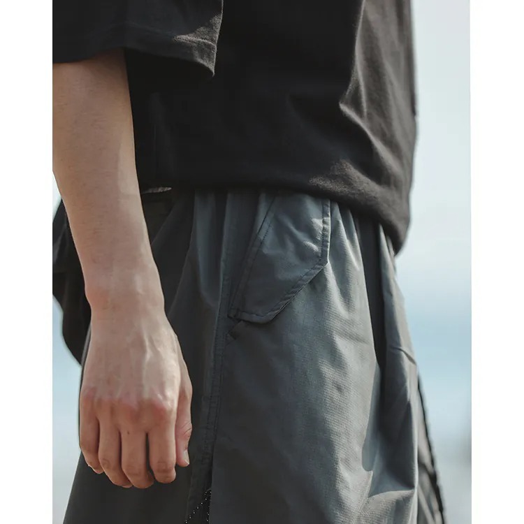 擷取傘兵褲細節,並以膝下寬鬆輪廓呈現,並挑選具備 #基礎撥水機能 及舒適體感的尼龍面料製成,而褲腳側開拉鍊的 #網布透氣口 加上腰際與褲腳的編織抽繩配置,在加強實用機能的同時也自由調整穿搭輪廓,更完整呈現了BS品牌觀點下的當代都街裝風格。
