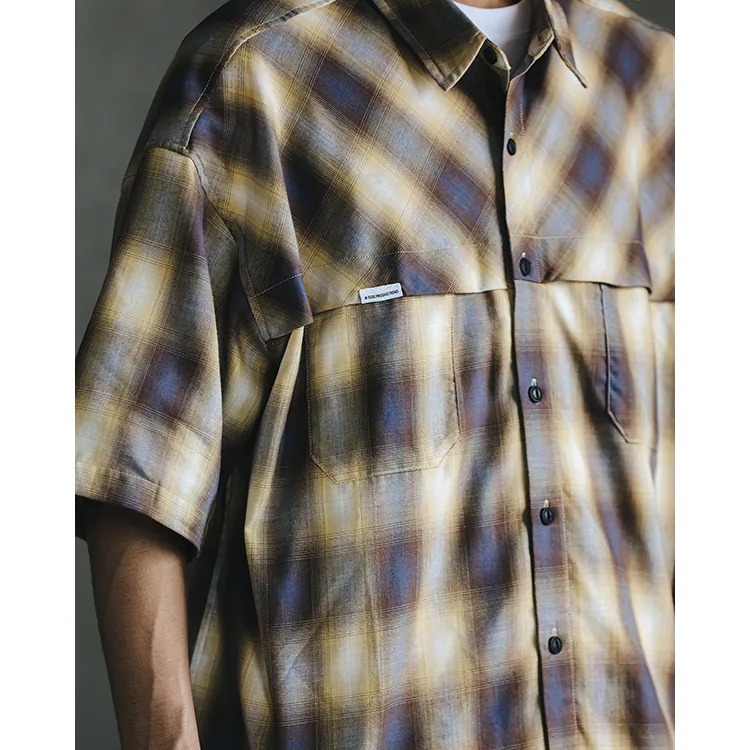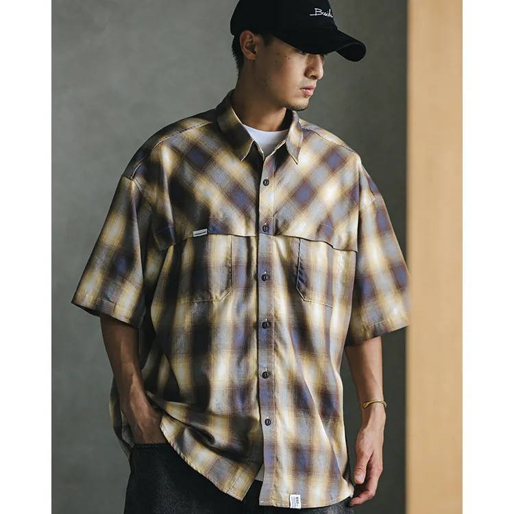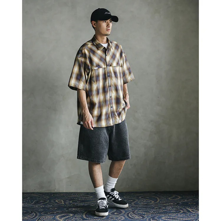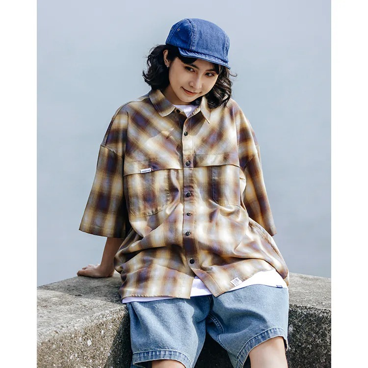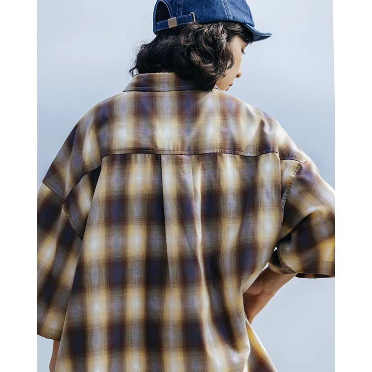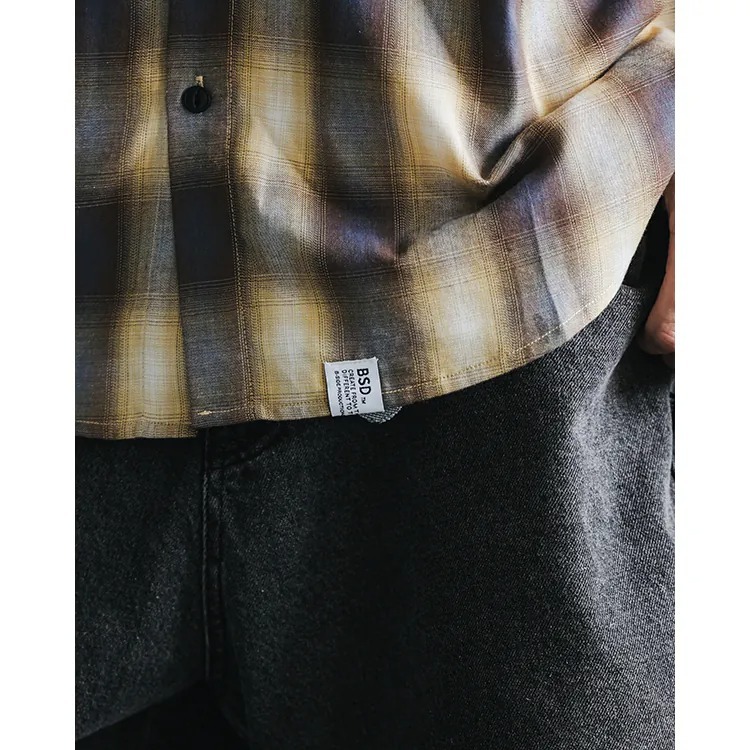 帶出了舒適慵懶的整體氛圍。而胸上斜置格紋與隱藏口袋的配置,搭上OVER SIZE寬鬆版型輪廓,完整呈現BS風格觀點的同時,也傳達襯衫單品兼具的復古氣息與當代街裝輪廓。