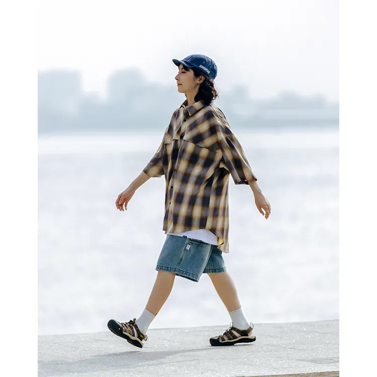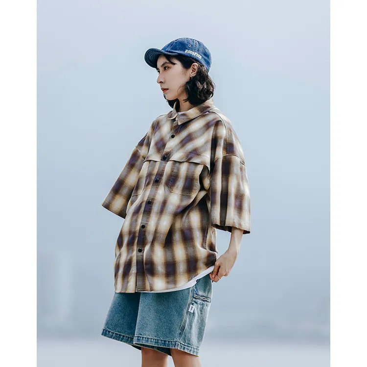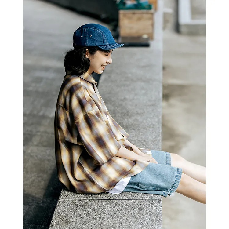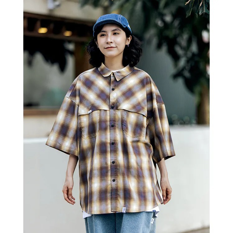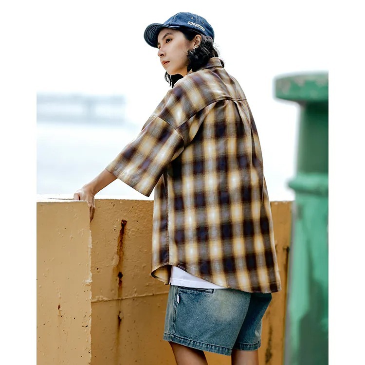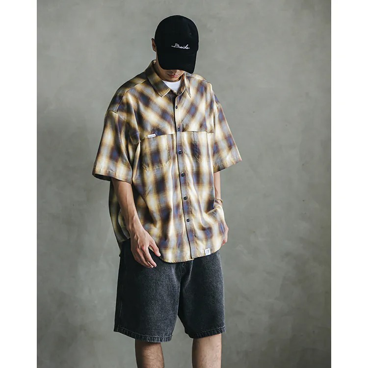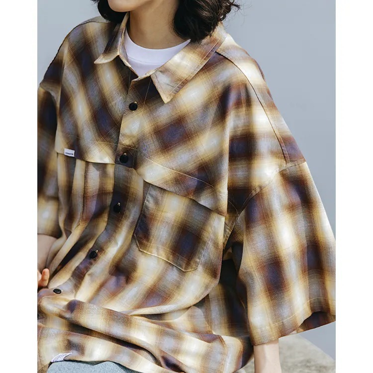 帶出了舒適慵懶的整體氛圍。而胸上斜置格紋與隱藏口袋的配置,搭上OVER SIZE寬鬆版型輪廓,完整呈現BS風格觀點的同時,也傳達襯衫單品兼具的復古氣息與當代街裝輪廓。