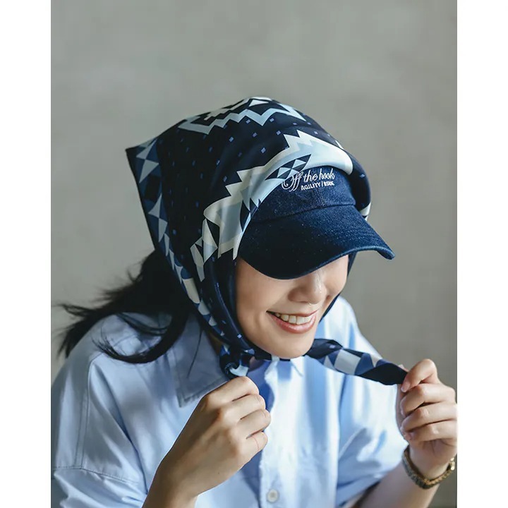 以融入了B-SIDE象徵黑桃與AGILITY鮭魚LOGO的印第安圖騰構圖作為企劃主體視覺,並以隨身涼感絲巾形式完整呈現。經過多次尺存調整,無論用於頭巾/領巾或是腰際裝飾都能有效呈現當代穿搭效果,並與企劃系列單品完整呈現” OFF THE HOOK “悠閒舒適掙脫束縛的企畫主題意涵。