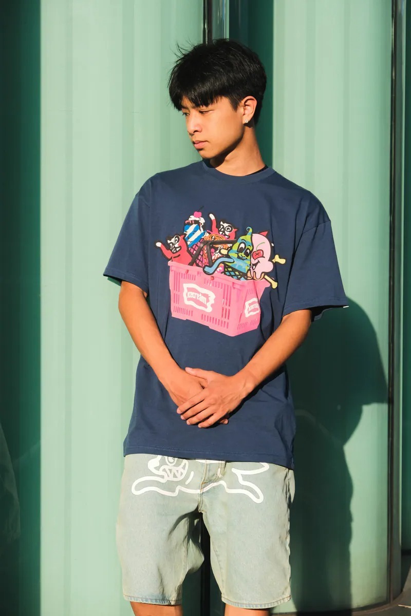 • The Basketcase Tee has a front graphic showing a basket filled with all the ICECREAM logos and the IC signet printed on the back.