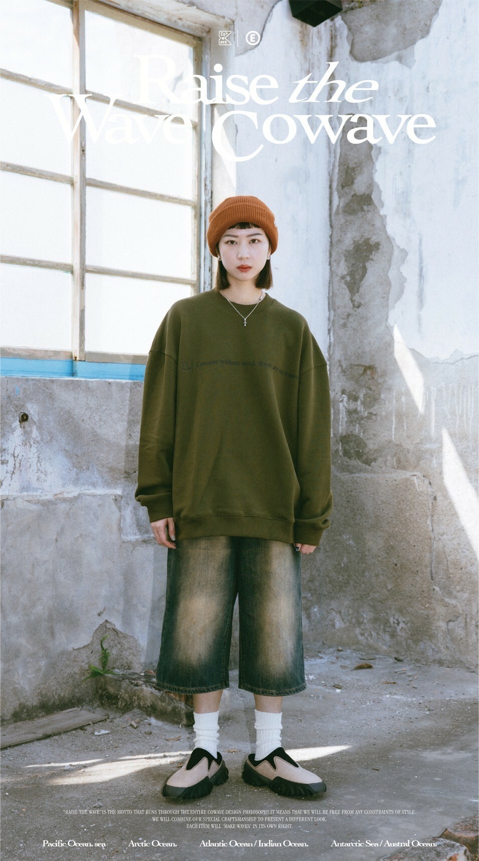 Cowave 2023-24 Fall & Winter Slogan font Sweatshirt