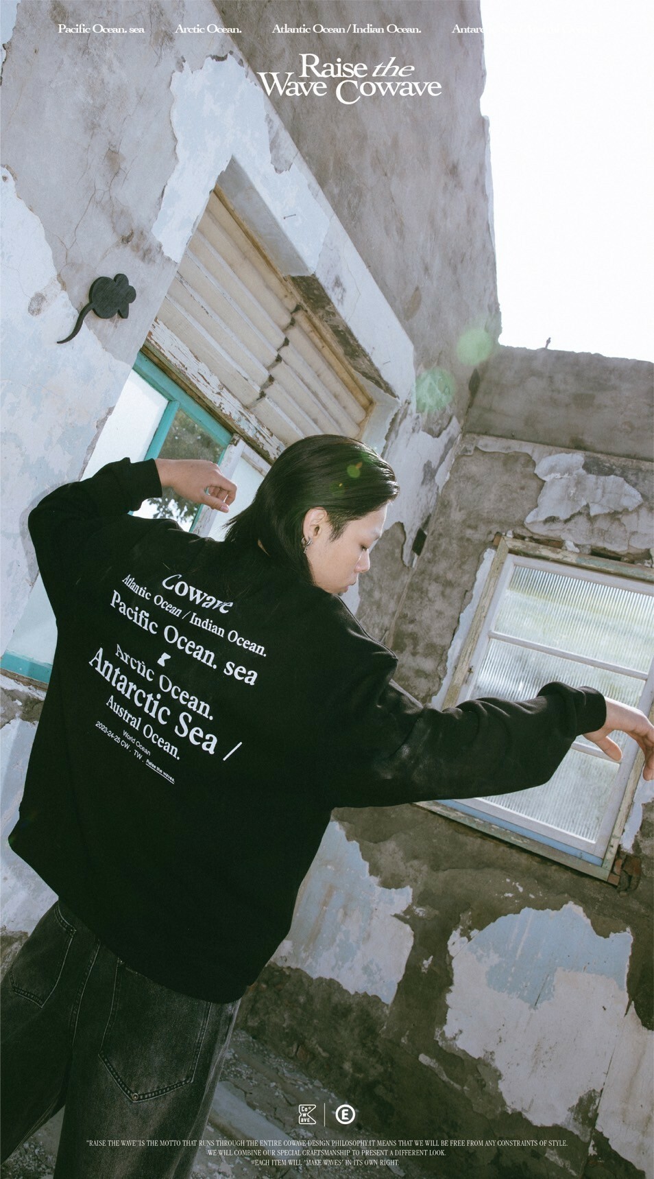 正面胸口巧妙運用文字排列,形成 "without wind there are no wave" 的序列,搭配LOGO輪廓的刺繡細節,背面的標語巧妙呼應,共同述說了本季所欲傳達的品牌核心。