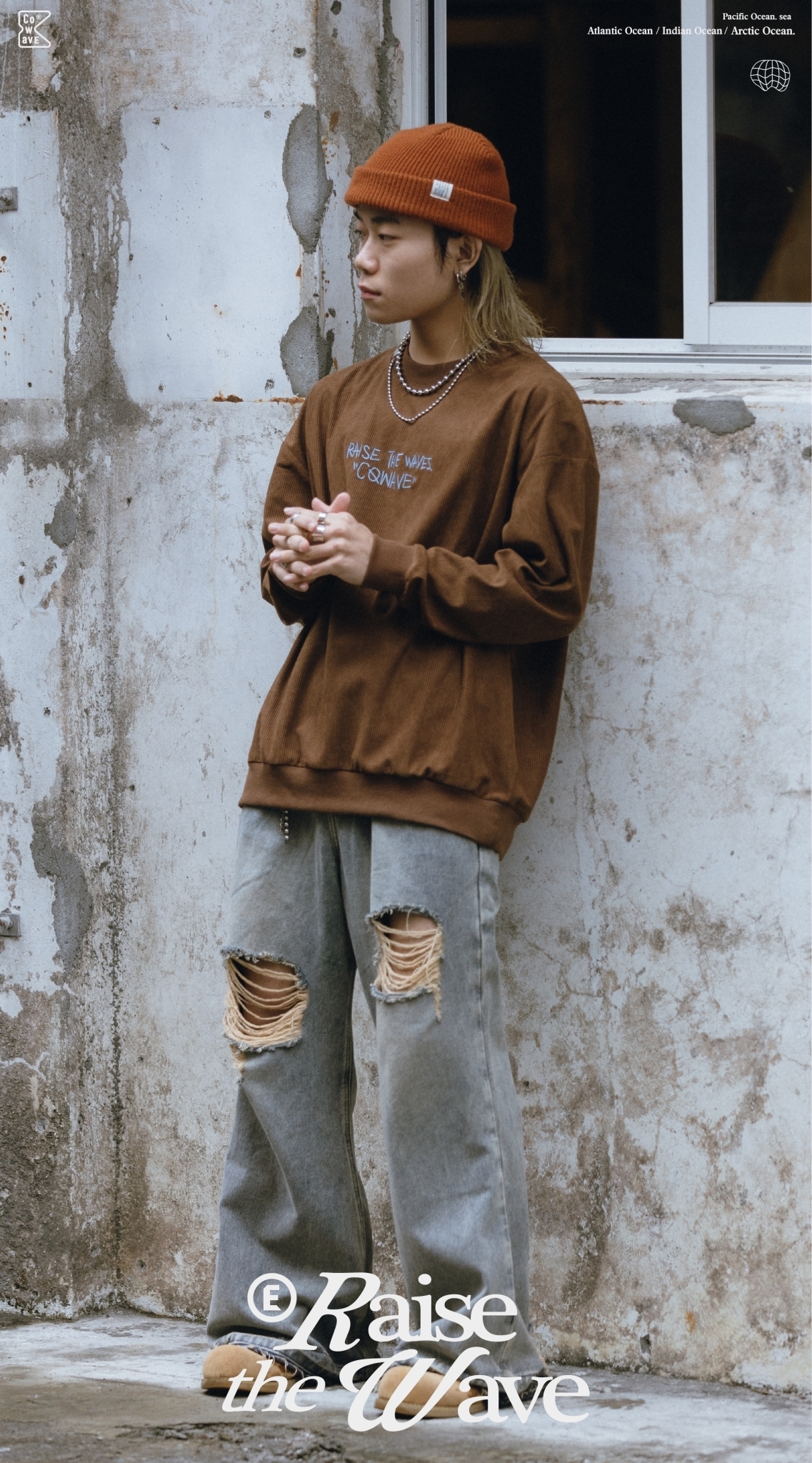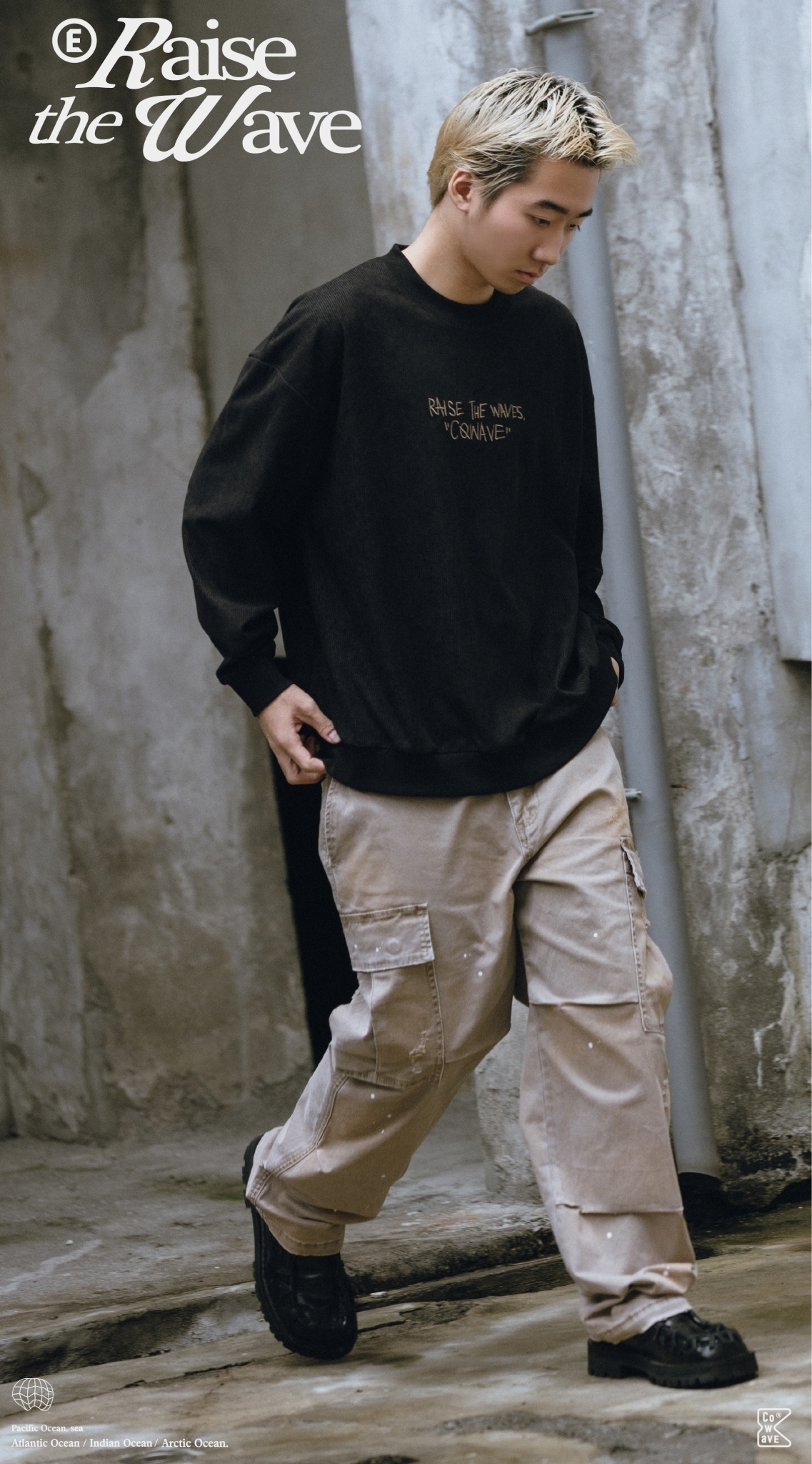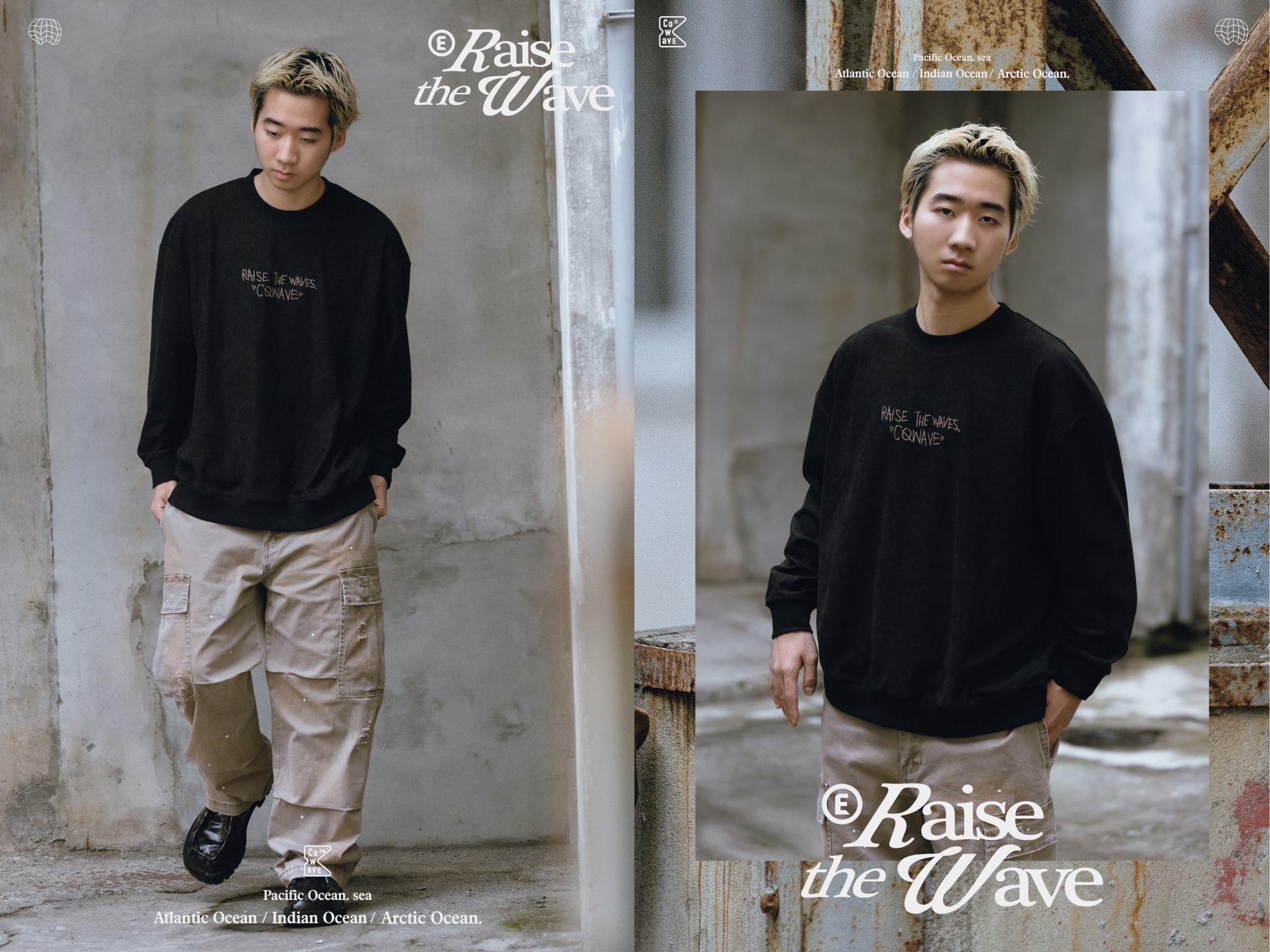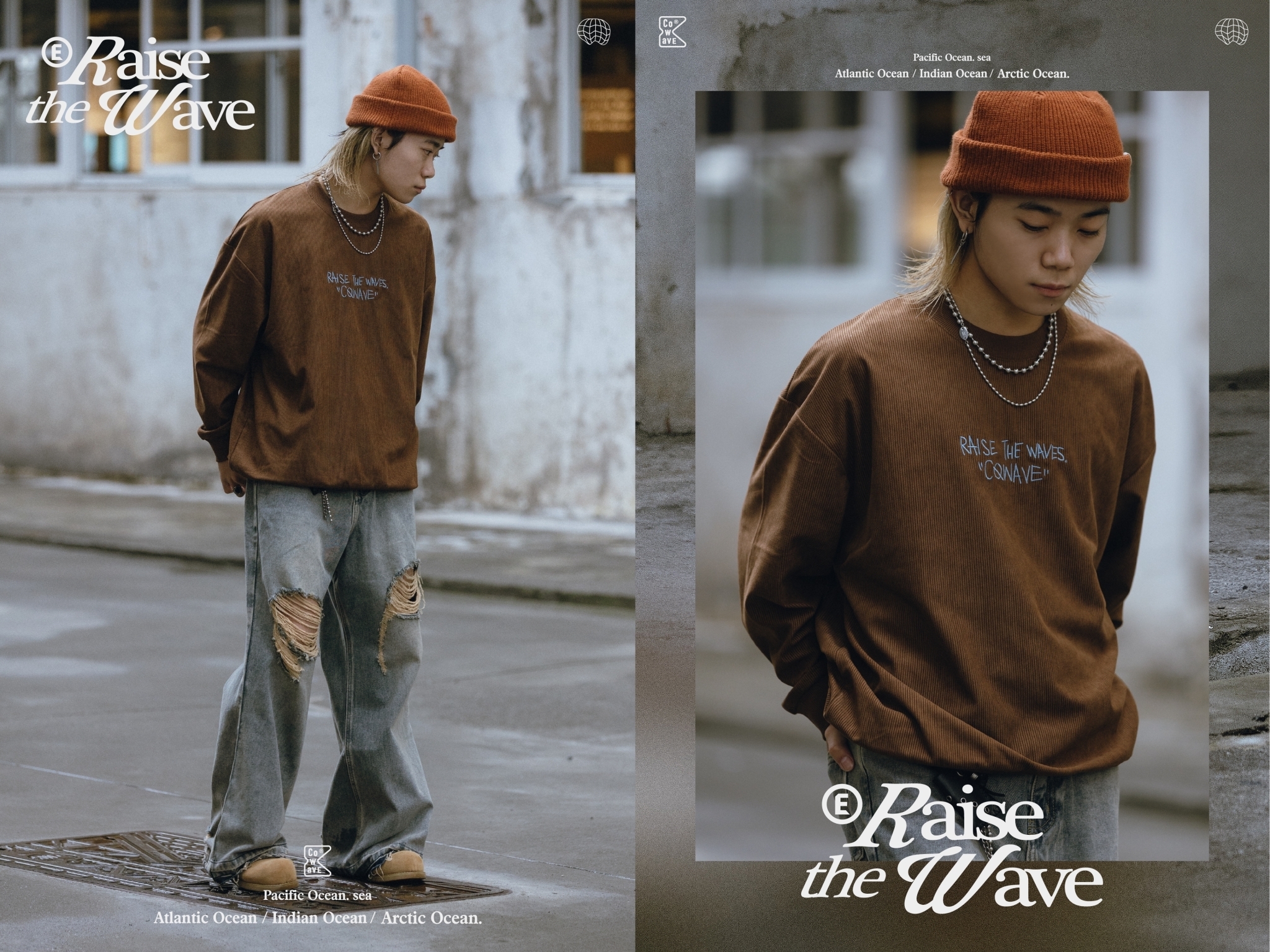 此款大學T恤摒棄傳統純棉毛圈布料,採用帶有彈性的燈芯絨面料,直條紋紋理不僅增強了復古視覺效果,還能在穿著上修飾身形。正面加入以精密電繡技術呈現的手寫 Slogan,細節精緻,為整體設計增添完整性與個性化特色。