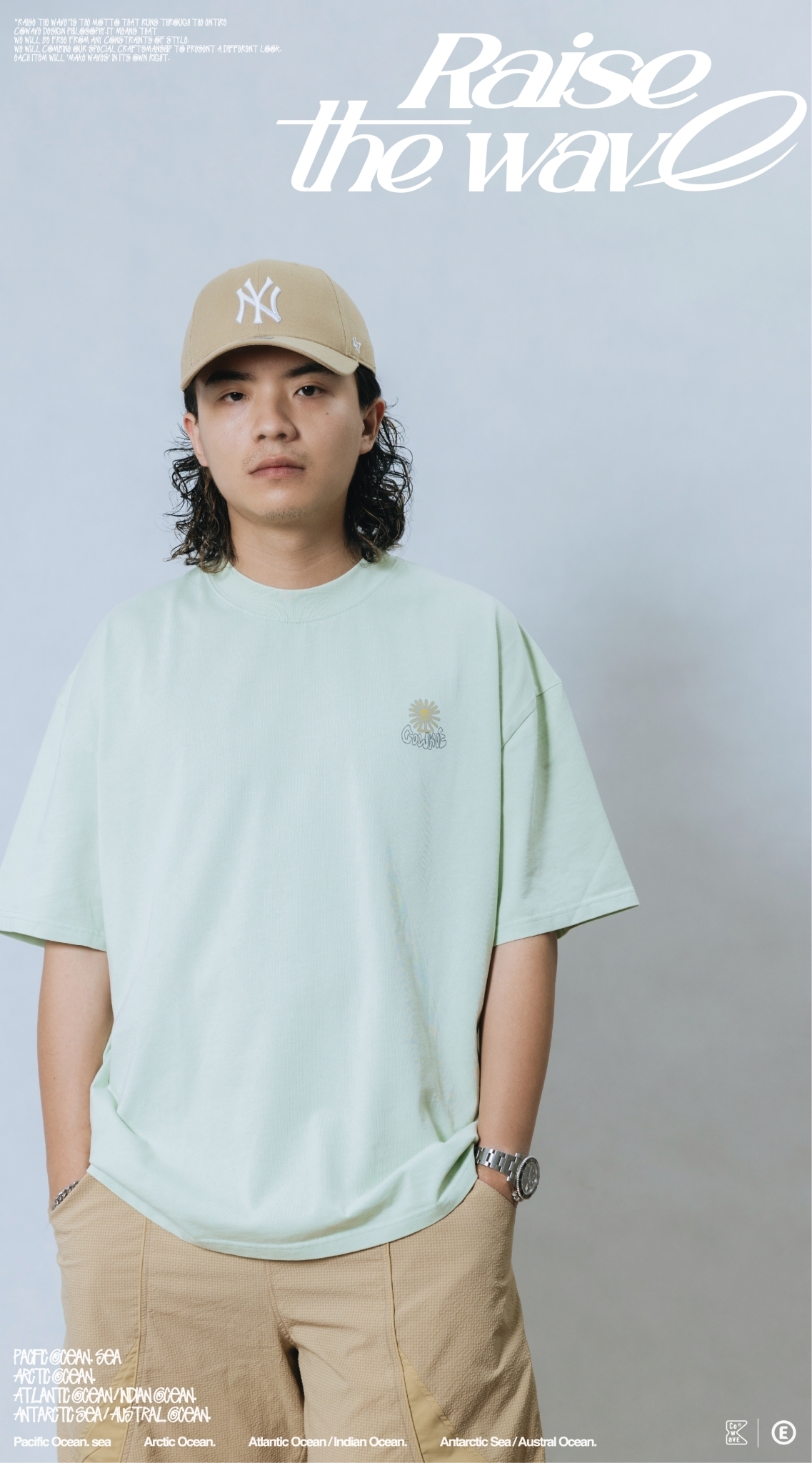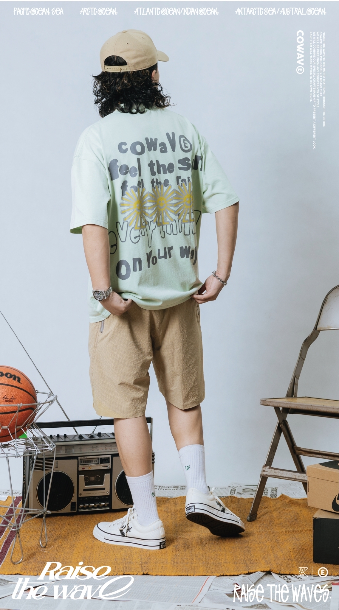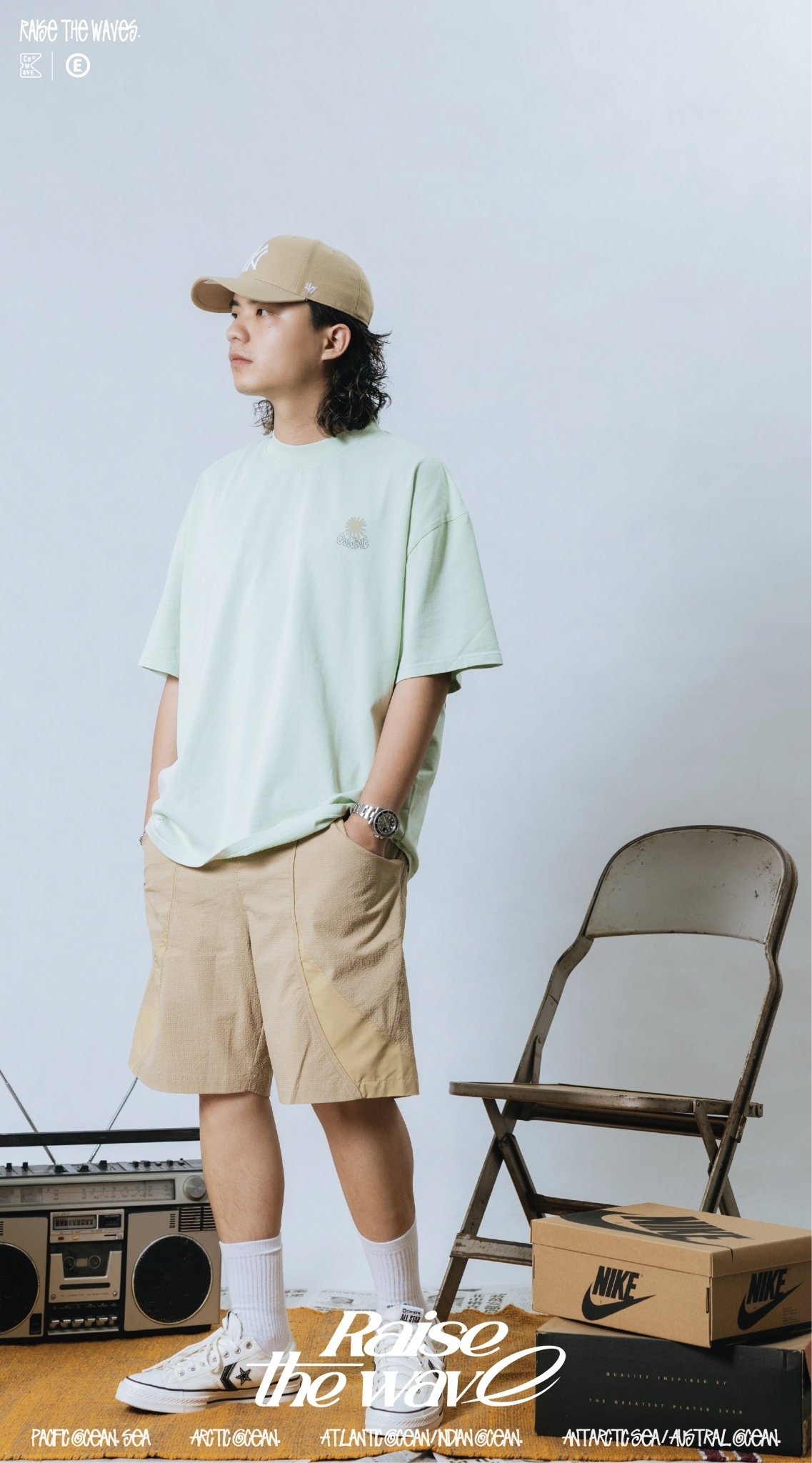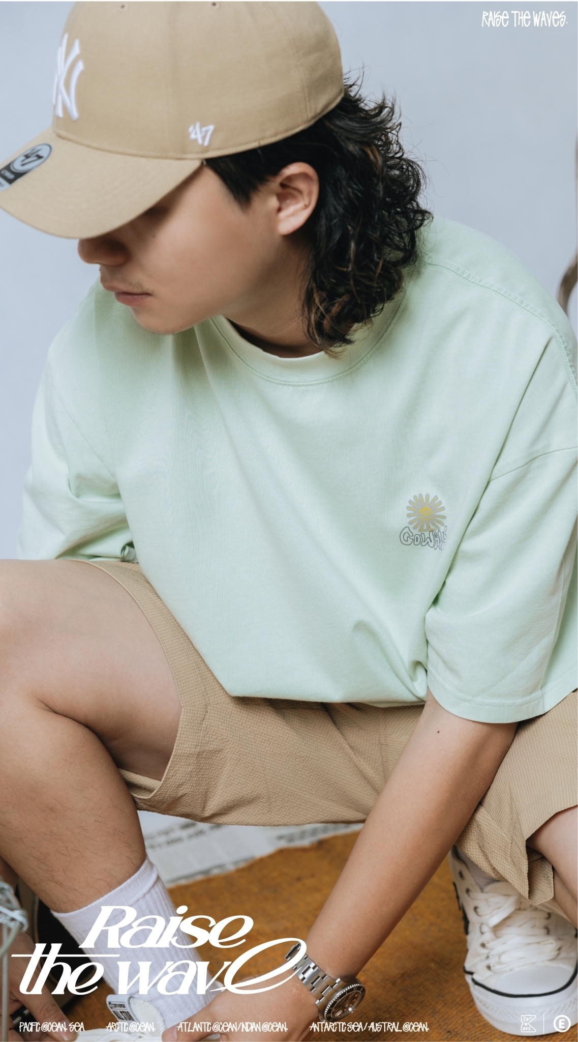 此款短踢將「陽光」卡通化,陽光代表著正向和開始。正面左胸口加入Sunny man 卡通圖像,背面則加入手繪文字並疊上Sunny man卡通圖,手繪文字「Feel the Sun ,Feel the rain ,Everything on your way一路上都會感受到陽光、雨天 」寓意著人生的道路上沒有永遠都是直線,有點彎曲才叫體驗人生,必須感受過這一路的曲折,才能更好好享受這雨過天晴的美好時刻。