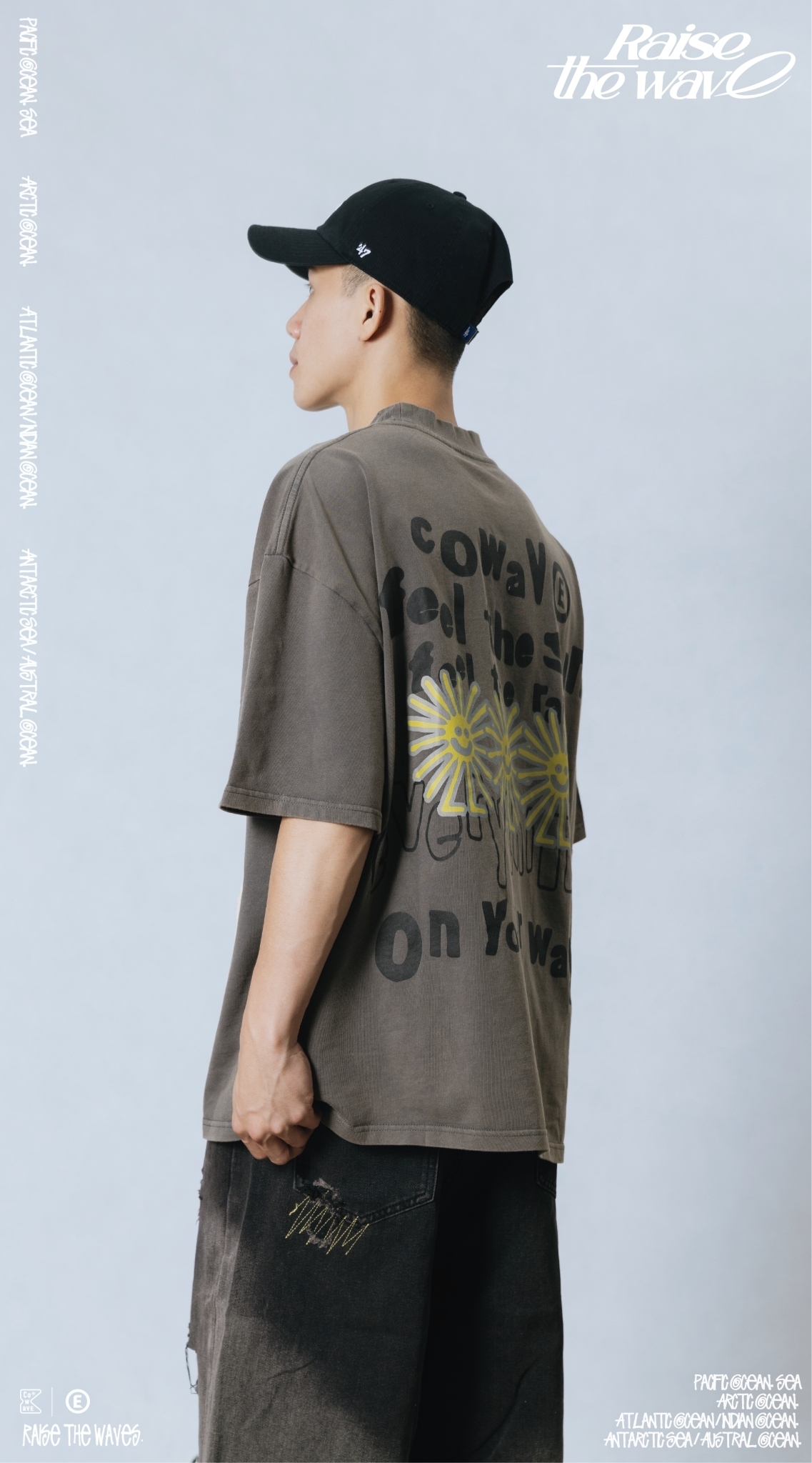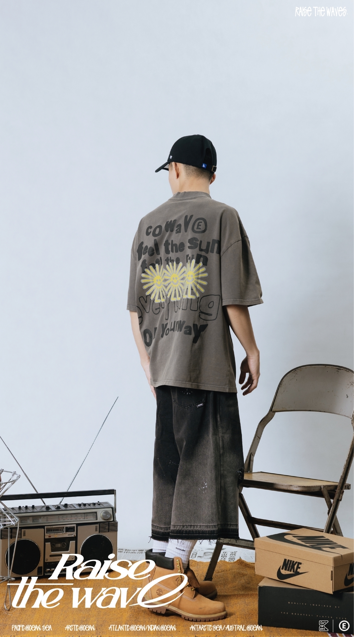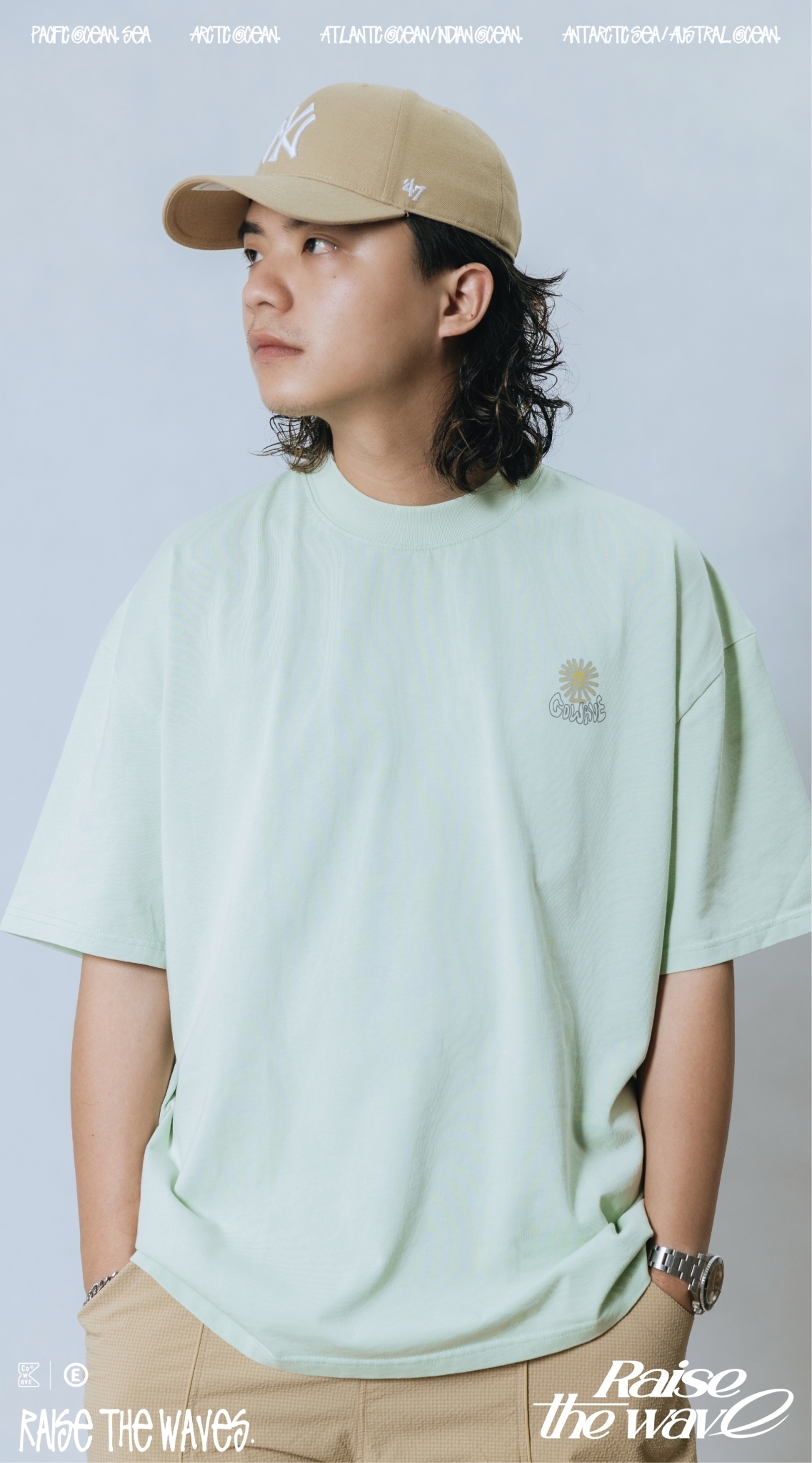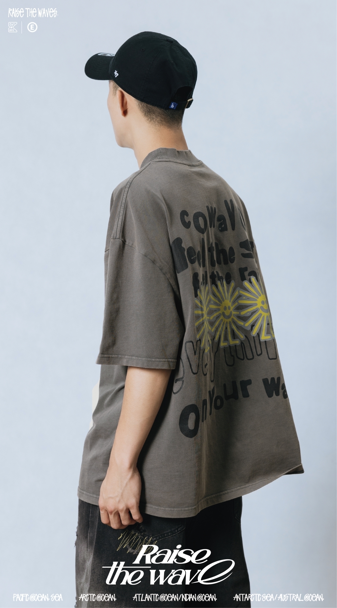 此款短踢將「陽光」卡通化,陽光代表著正向和開始。正面左胸口加入Sunny man 卡通圖像,背面則加入手繪文字並疊上Sunny man卡通圖,手繪文字「Feel the Sun ,Feel the rain ,Everything on your way一路上都會感受到陽光、雨天 」寓意著人生的道路上沒有永遠都是直線,有點彎曲才叫體驗人生,必須感受過這一路的曲折,才能更好好享受這雨過天晴的美好時刻。