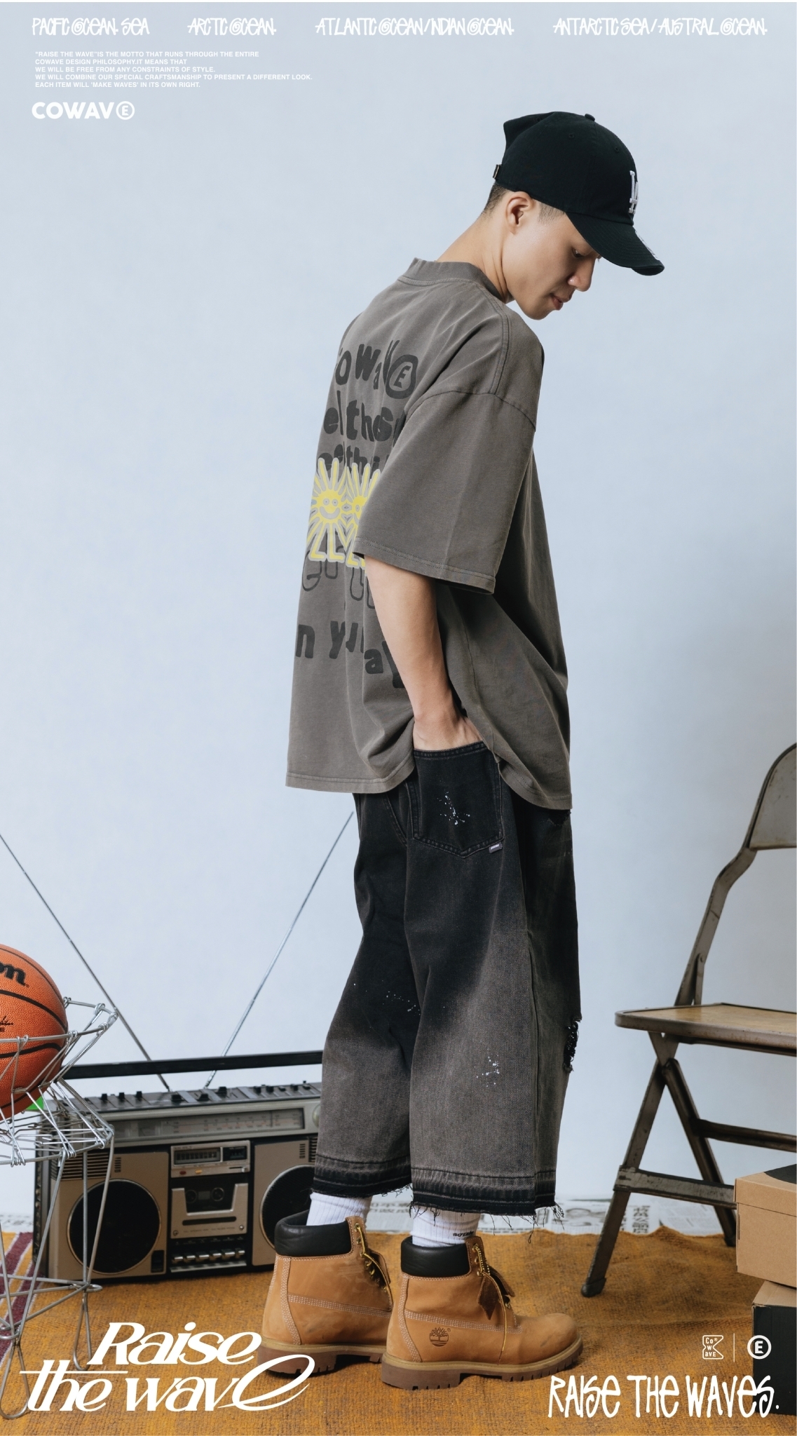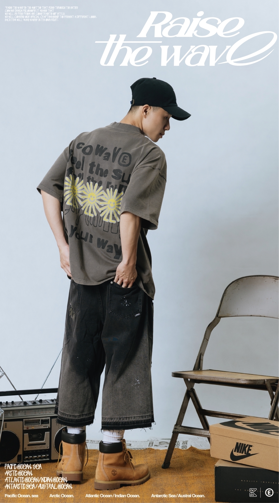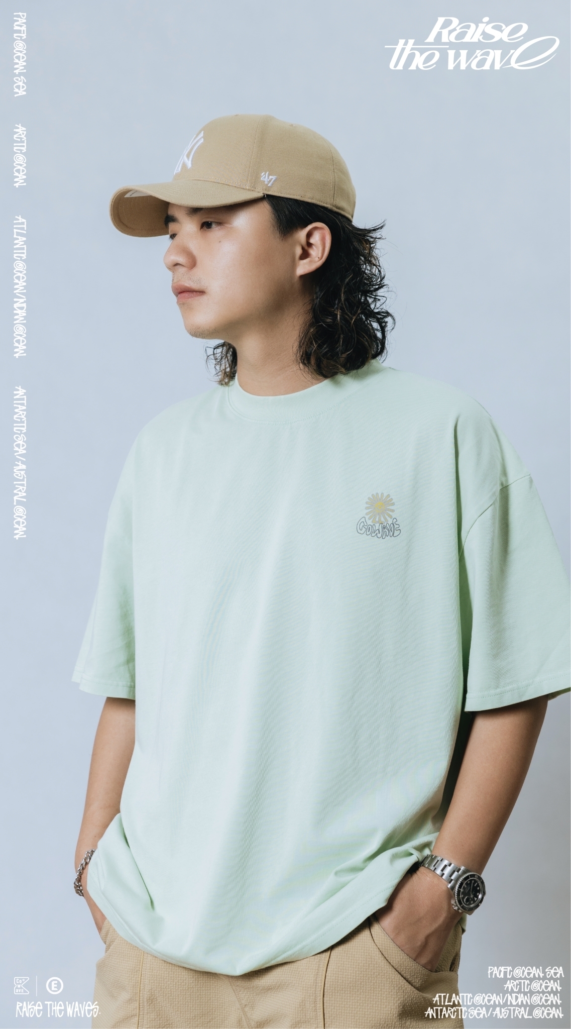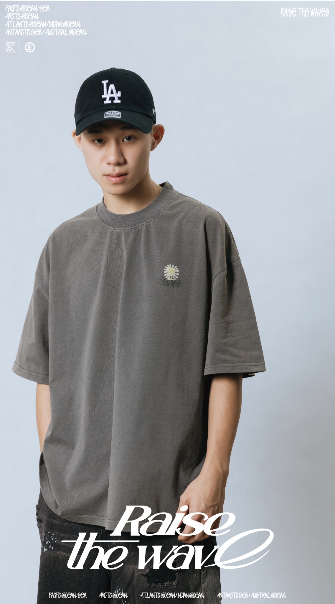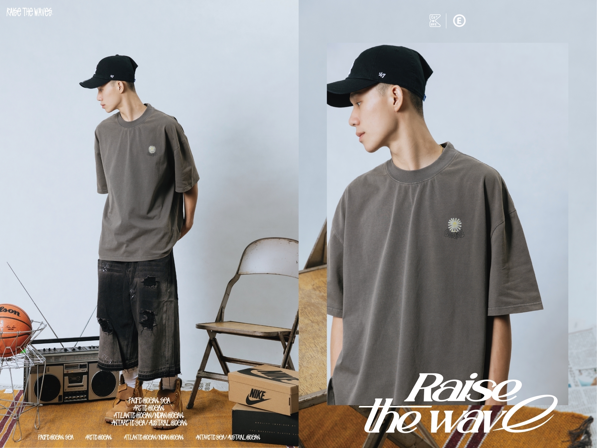 面料選用 270 克的平紋雙紗棉,雙紗織法工藝使面料更加細膩柔軟。結合適中的厚度和平滑柔順的質地,再以洗水做舊工藝呈現復古氛圍,不僅賦予了衣物舒適的穿著感,更展現了這款 T-shirt 對於高品質的極致追求。