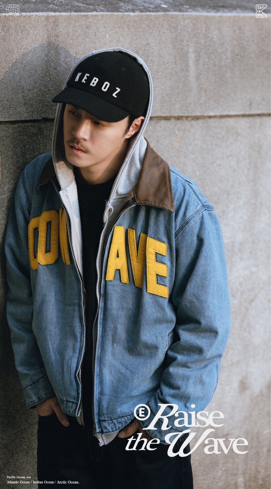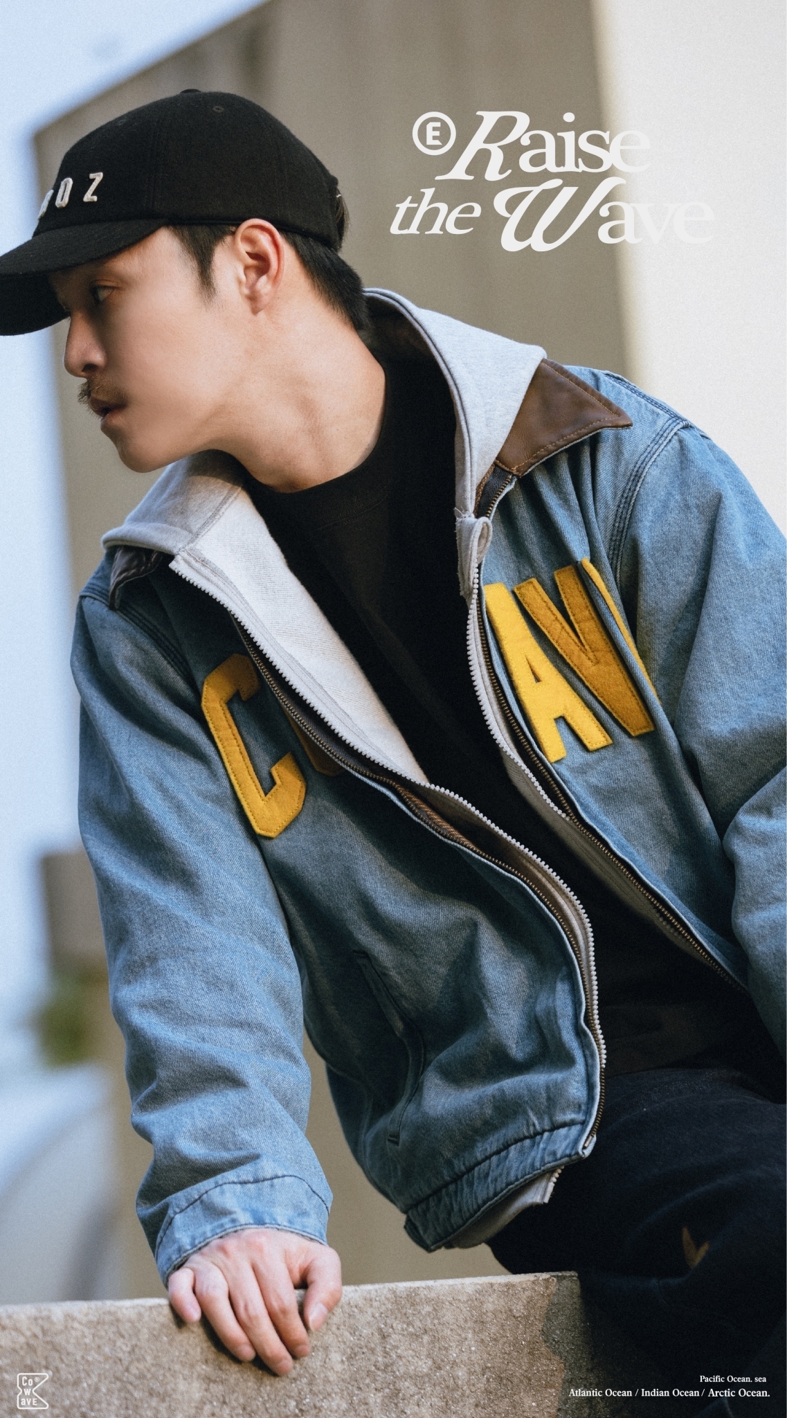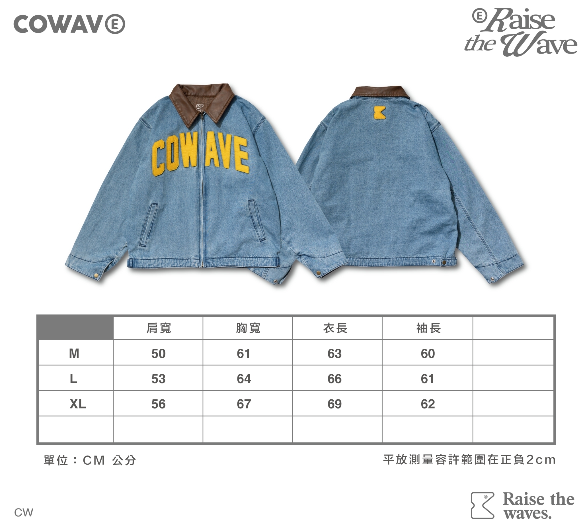 設計細節方面,正面融入大面積 COWAVE 字體,以不織布貼布工藝呈現,採用不飽和黃色點綴,營造濃厚的復古氛圍。此外,拼接處特別加入褪色處理技術,呈現自然過渡效果,讓整體設計更顯細膩,完美結合經典與現代風格,彰顯復古魅力與設計感。