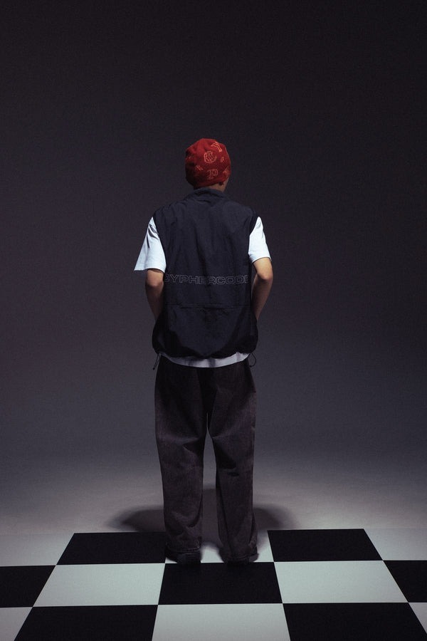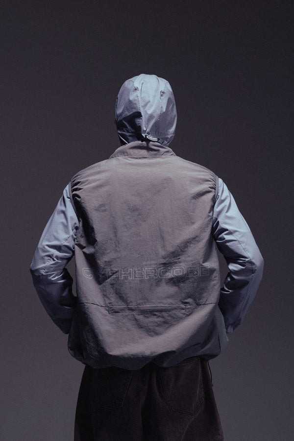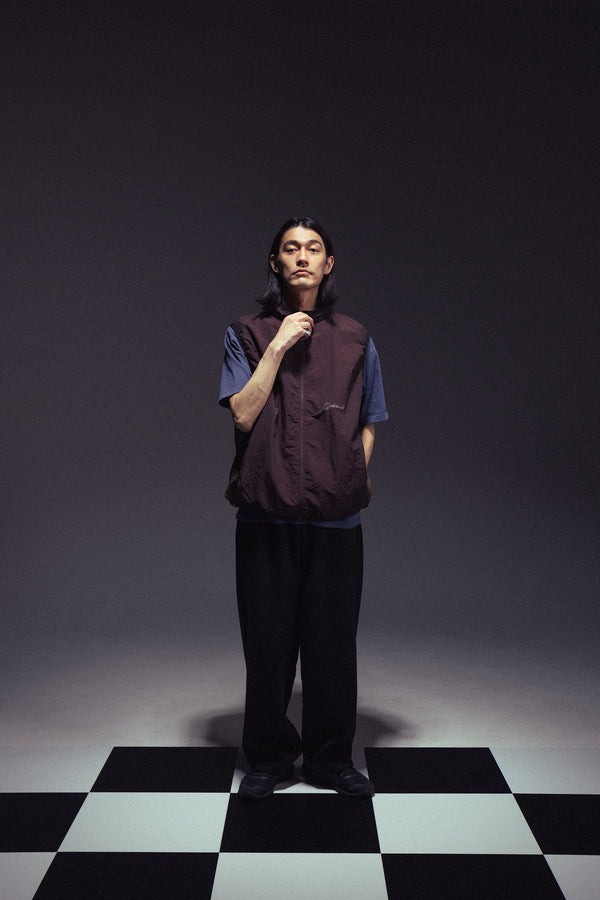TシャツやロングスリーブTの上から軽く羽織れるライトウェイトなナイロンベスト。