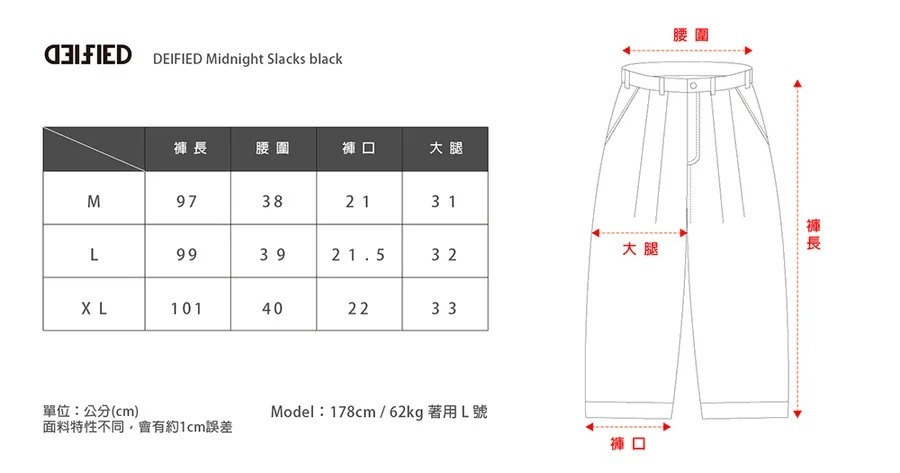 褲長:2(M) 97 / 3(L) 99 / 4(XL) 101