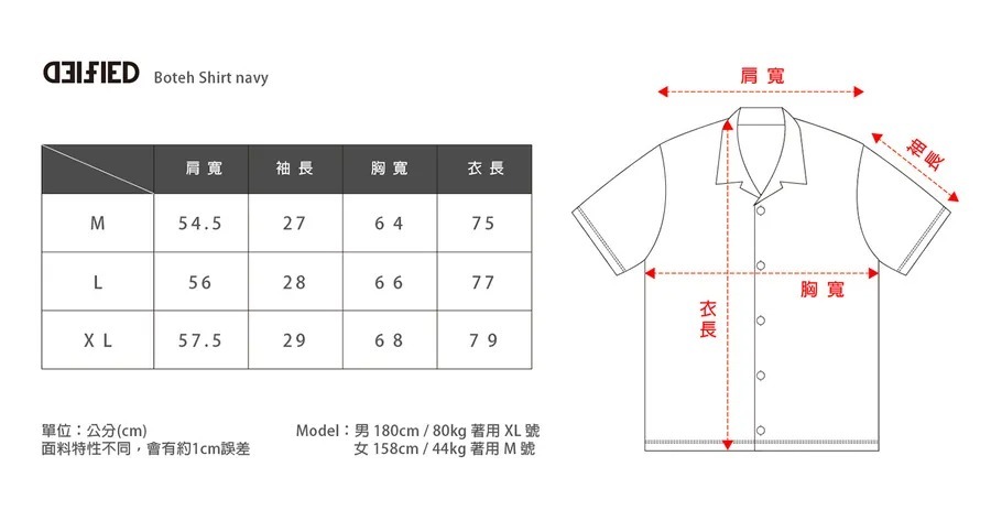 衣長:2(M) 75 / 3(L) 77 / 4(XL) 79