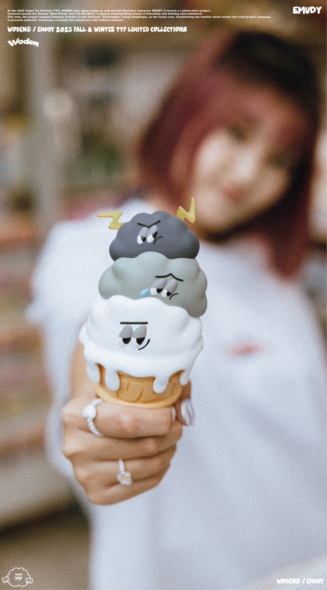 當生活變得沉重時,你只需要一球「Ice Cream Emudy」來療癒你的心情,這款 Ice Cream Emudy 將以軟膠手辦形式登場,輕巧的尺寸正好可以放在手掌心,無論擺放在書桌、床頭,或隨身攜帶,都能在每個日常瞬間帶來一抹甜蜜與愉悅。