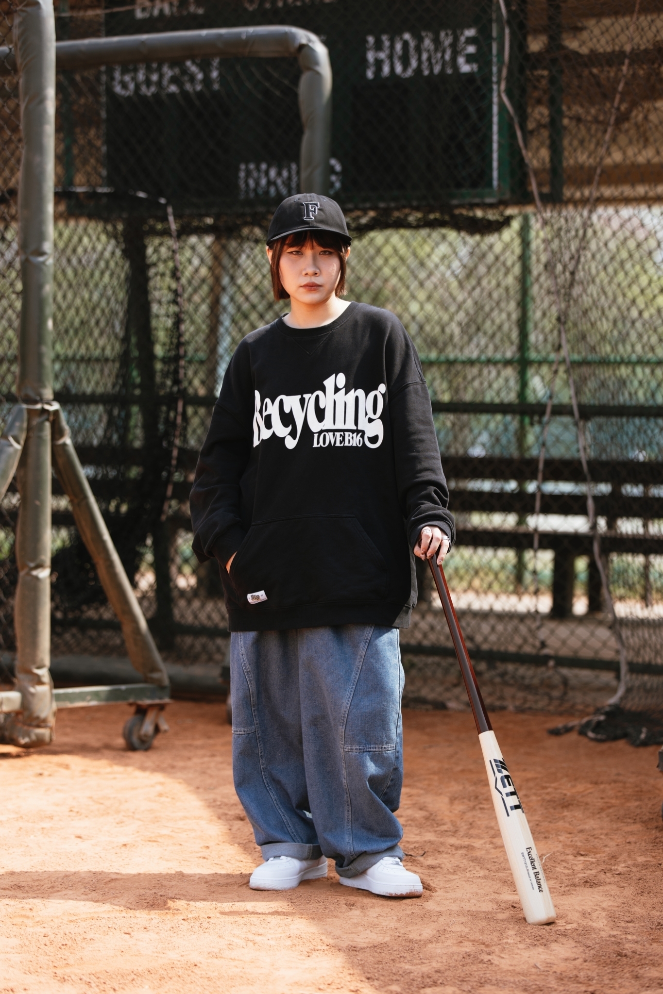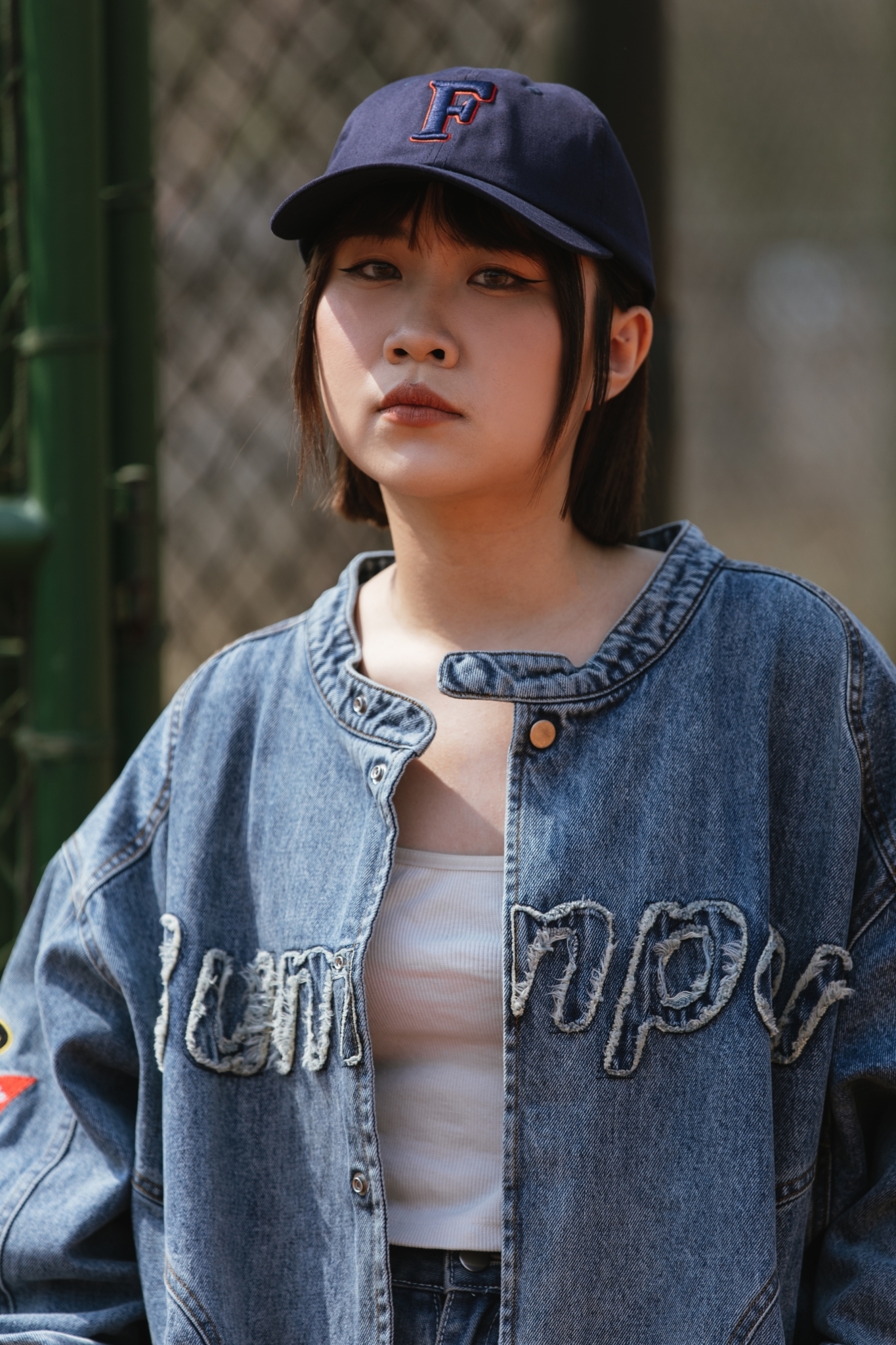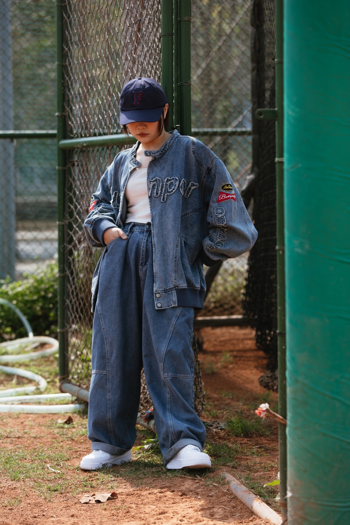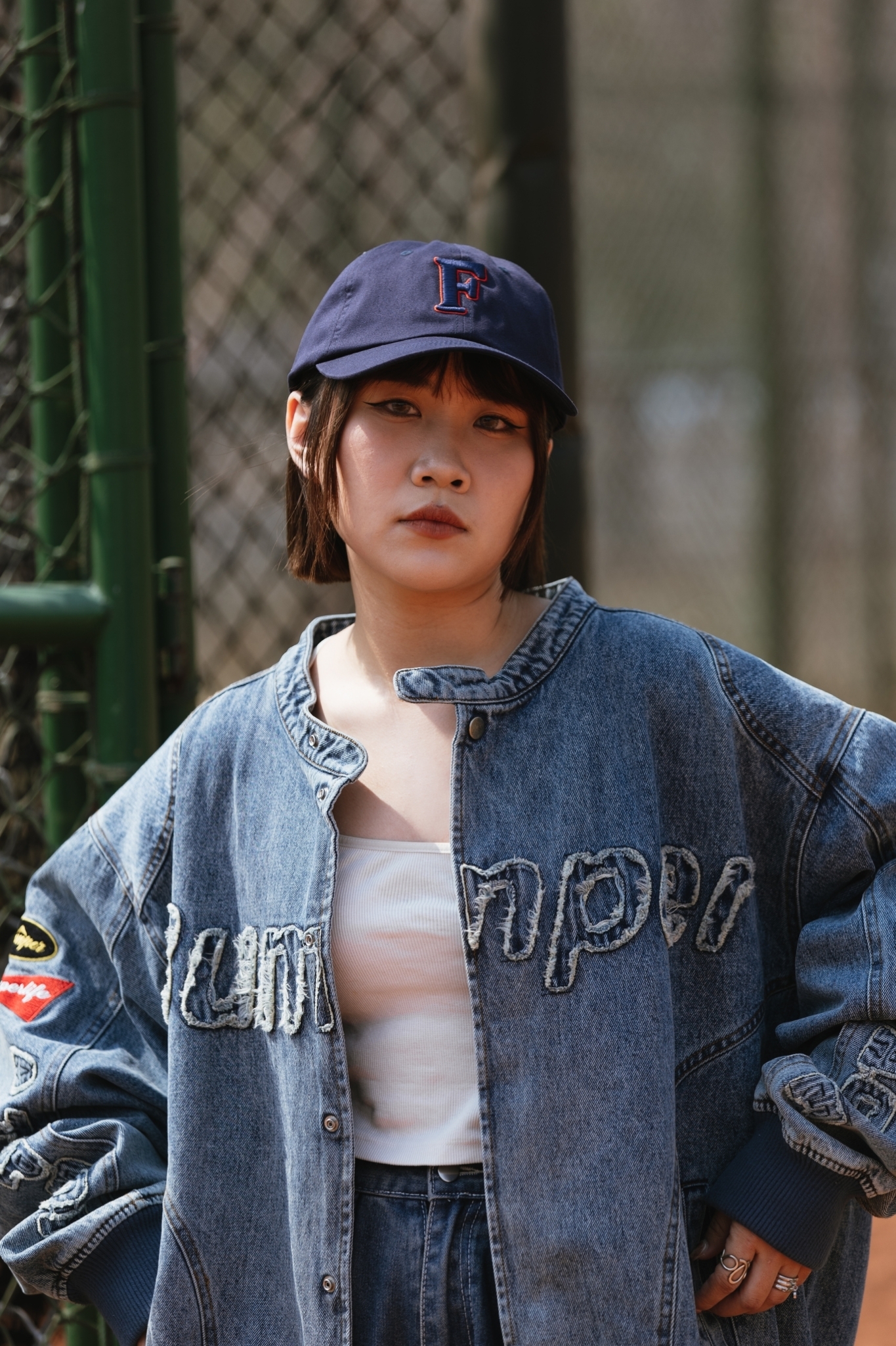 FELCO(フェルコ)のブランドの頭文字の「F」がフロントに2色使いで刺繍されています。フロントの2色のトリミング刺繍が秀逸です。