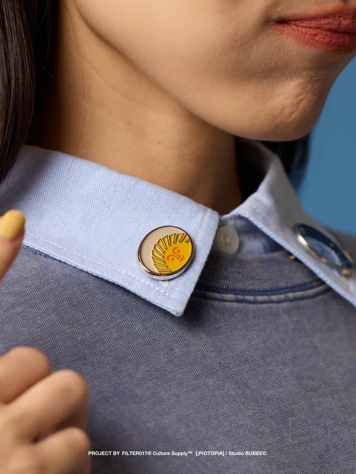 以太陽與新月的圖像延伸作為主視覺,藉由沖壓鑄型、人工入色工序將色彩與細節精緻呈現,整體色澤鮮艷飽和,細節精緻出色,可用於服裝、織品及包包配飾等,為日常搭配增添個人特色。