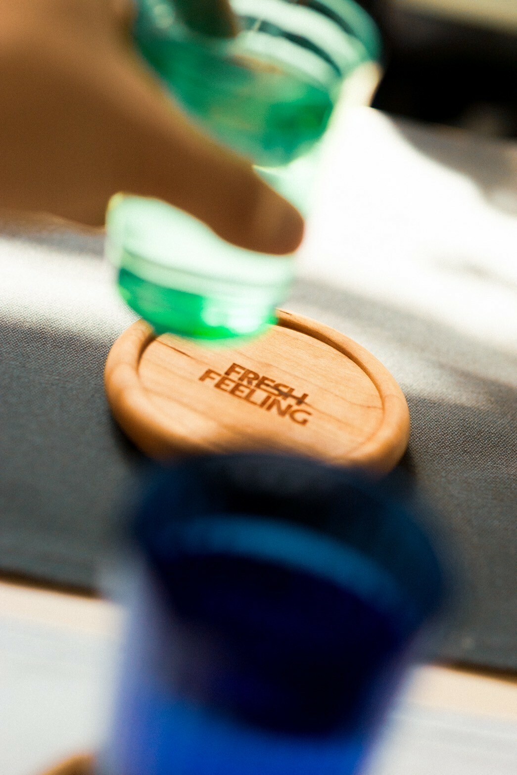 FFらしい緩やかなフォルムで表現した、天然の木を楽しめる木製のシングルコースター。