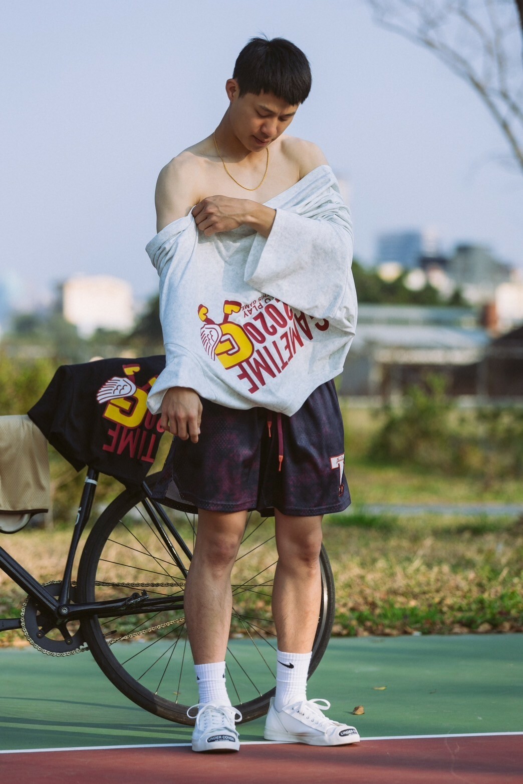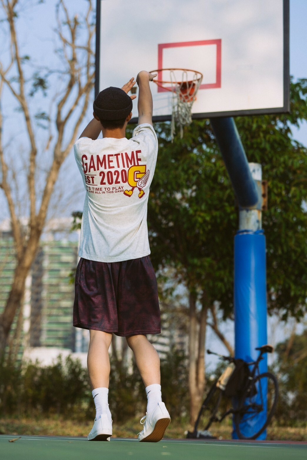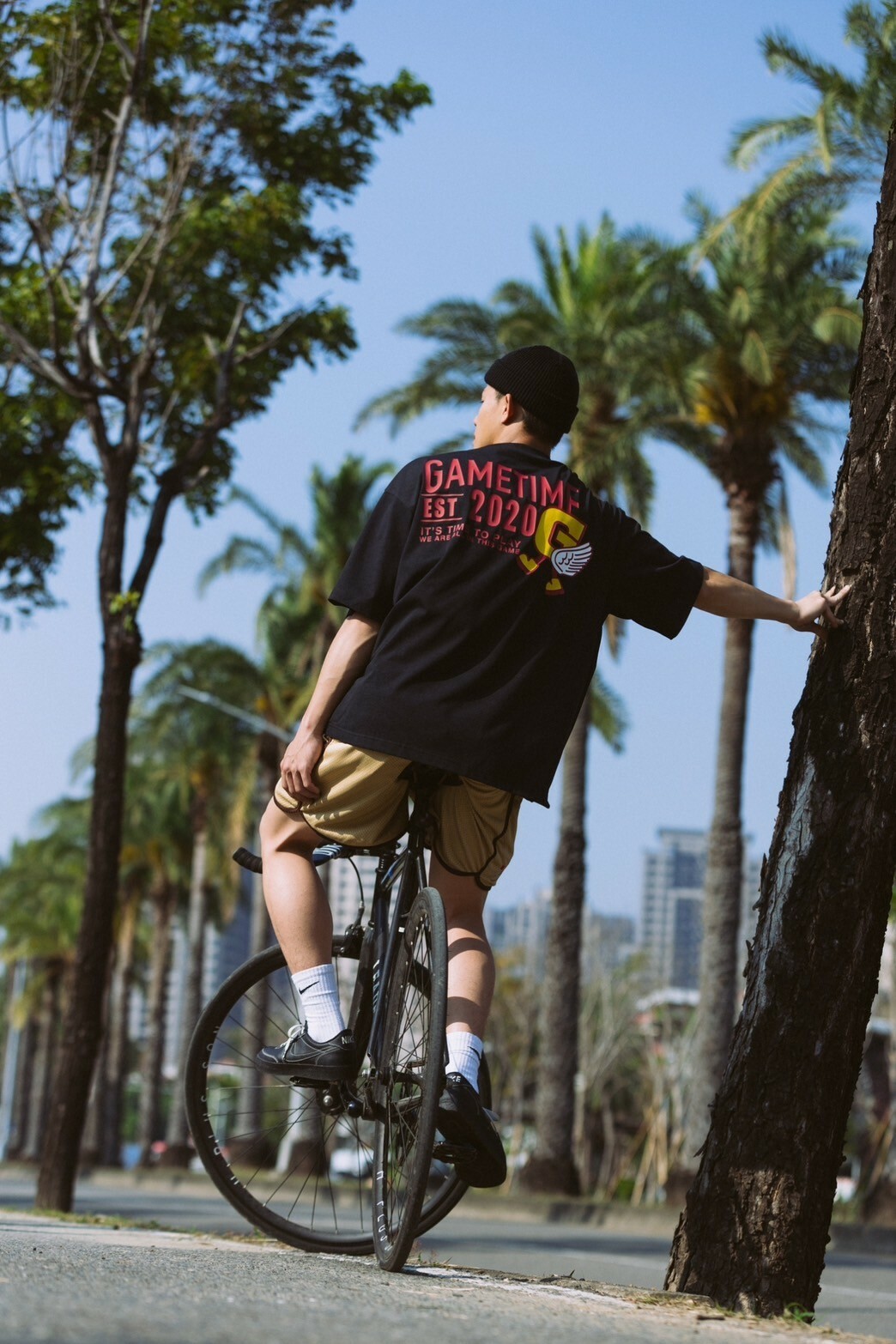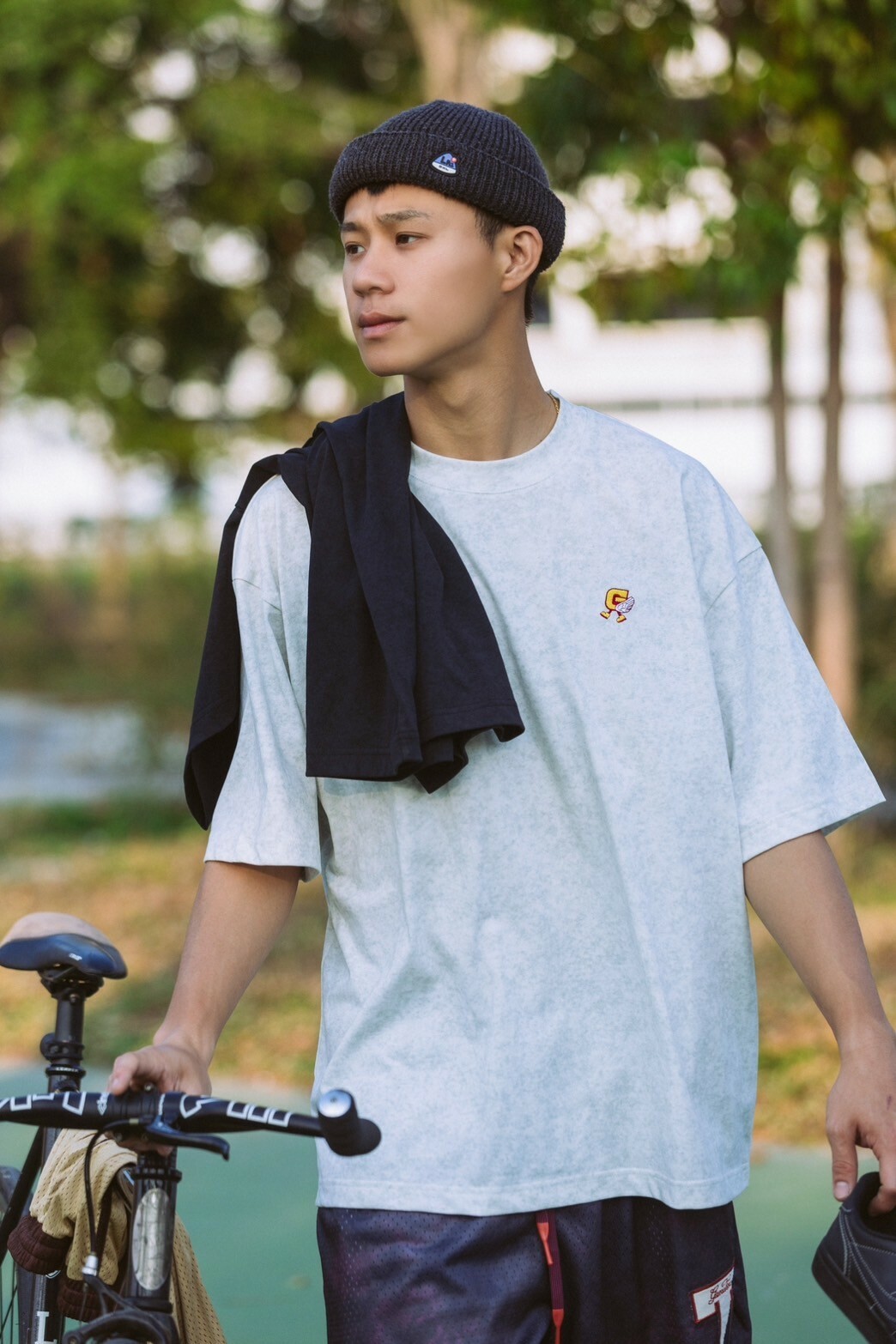 本次GAMETIME開季T-shirt以美式復古風格為設計靈感,主體面料採用蠟染工藝,營造出濃厚的復古氛圍,並巧妙融入美式插圖元素。在細節設計上,正面左胸位置加入字母G插畫角色,並以精緻的刺繡呈現。背面則運用了美式廣告排版風格,大文字排版巧妙結合字母G插畫角色,與正面設計相呼應,營造出和諧的復古風格。