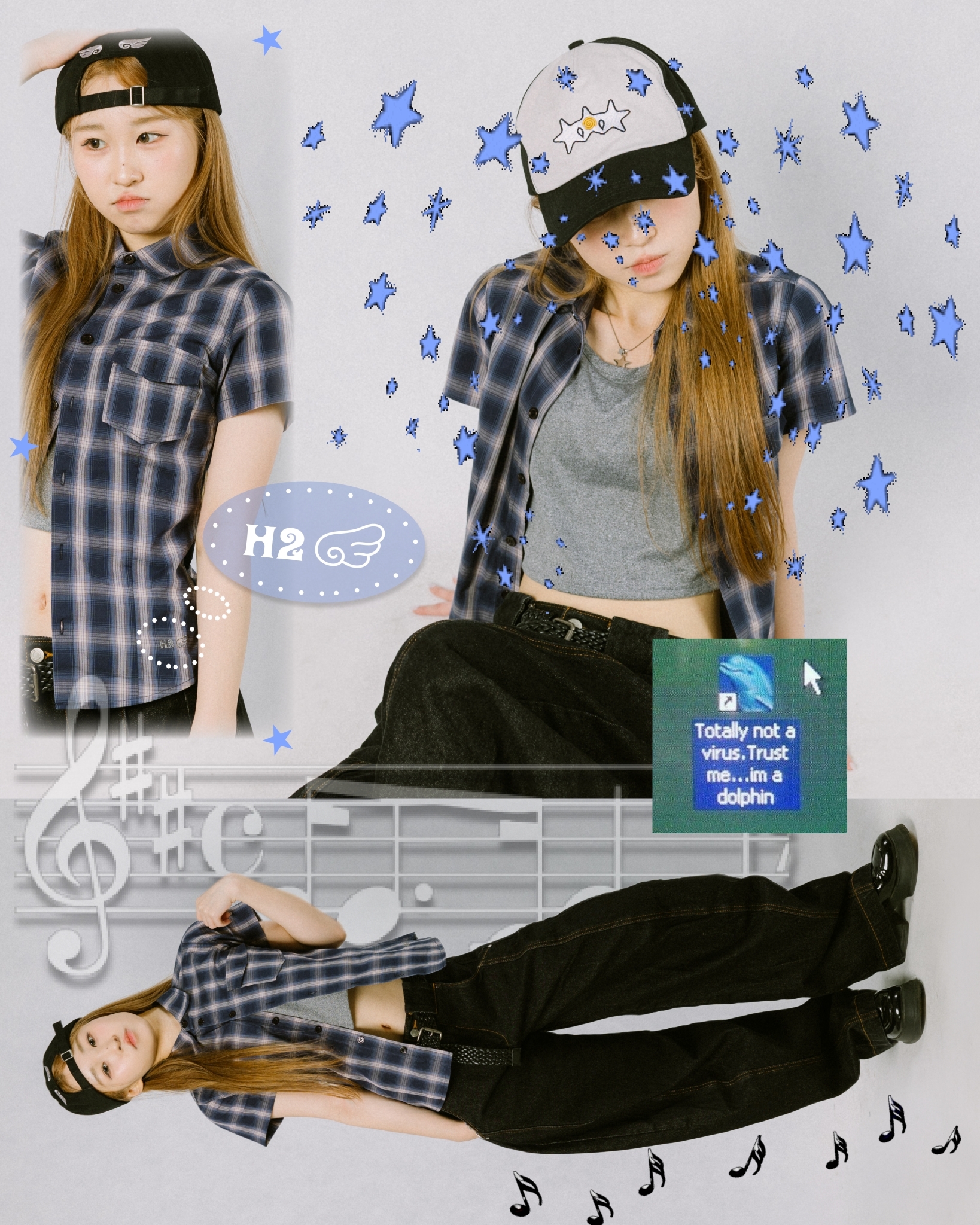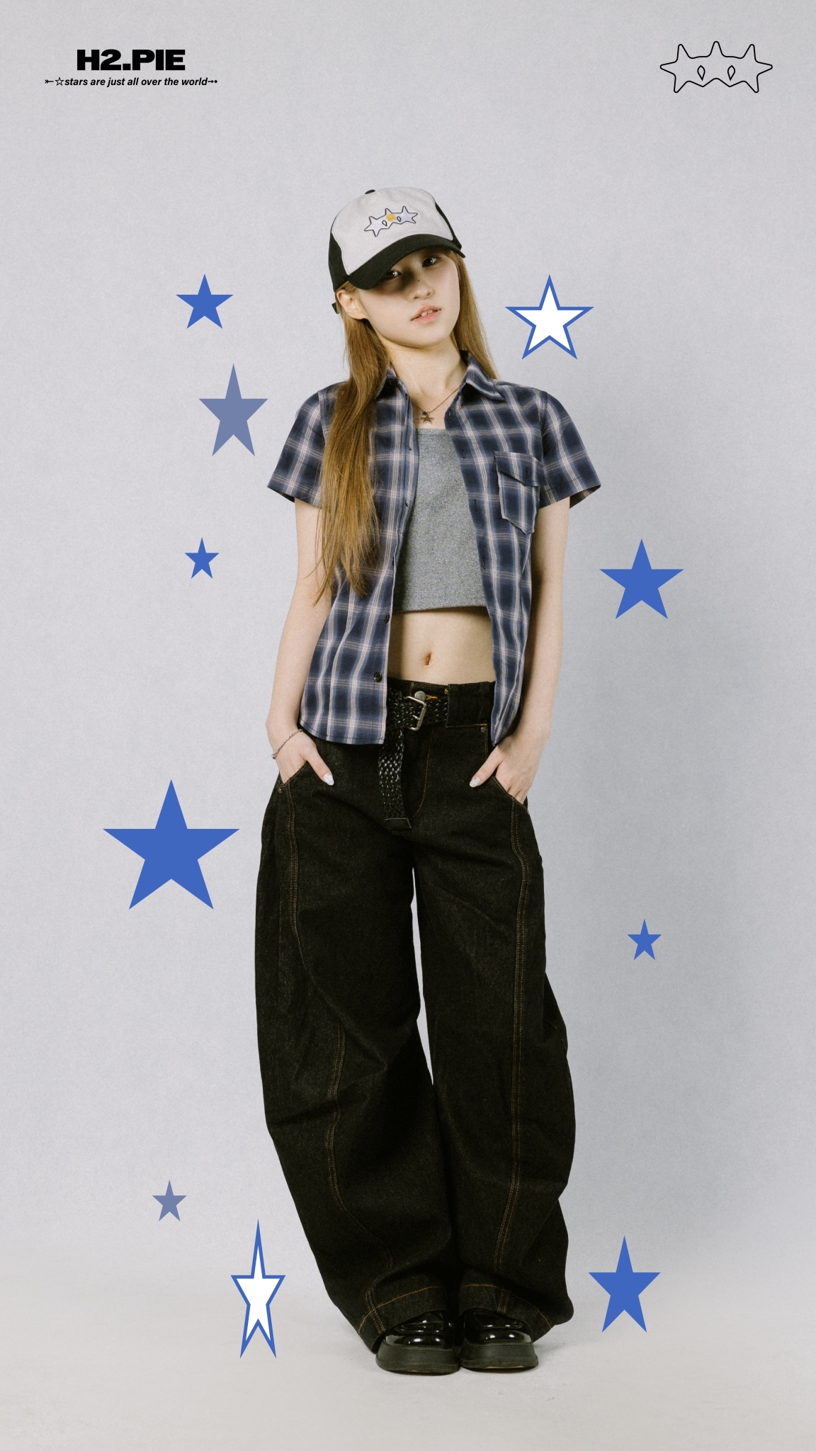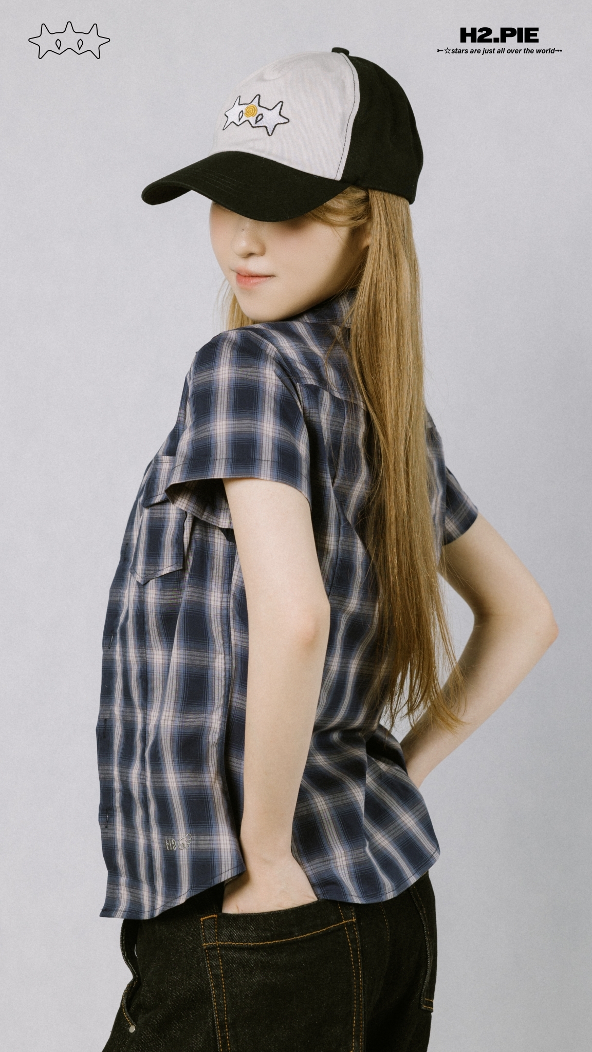 復古格紋+收腰版型搭配壓摺,下擺『 H2 』搭配小翅膀作為細節亮點