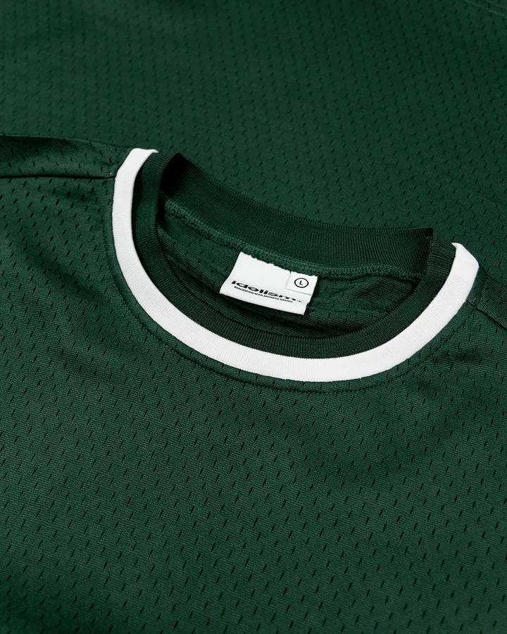 圓領訓練上衣呼應賽服元素,轉換較為低調的場下視覺,對應不同強度的穿著情境,展現休閒球裝的搭配彈性。