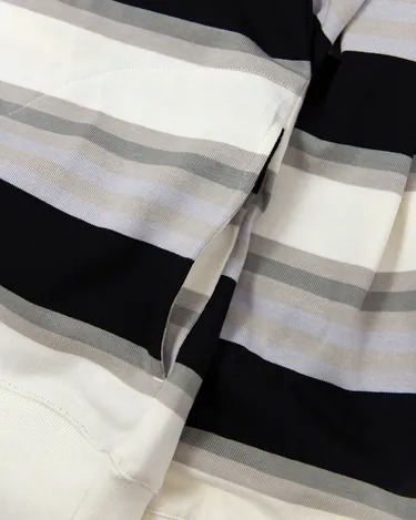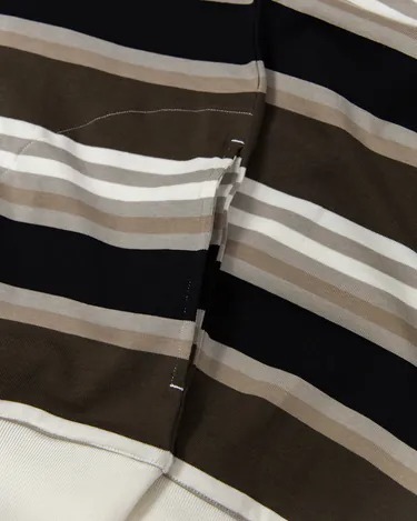 橫條紋展現著經典休閒的平面層次,轉換在正式與休閒之間,是駕馭穩重樣貌的輕鬆選擇,輕盈對比的穿搭色調交織映襯出一層復古氣息。側向隱藏式口袋簡單提升了服裝功能性。