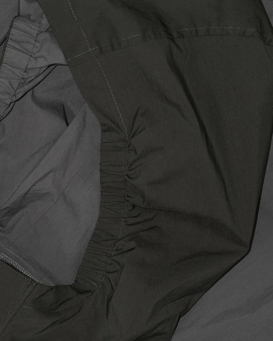 搭配鬆弛的輪廓,勾勒出輕盈卻充滿力量的身形線條,面料以輕量棉質防風布料打造,