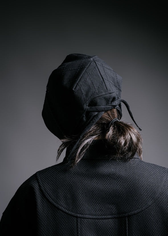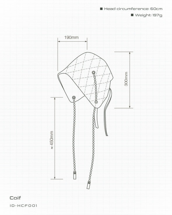 由中世紀的Coif布帽,抑或是現代被轉化為嬰兒用的綁帶軟帽Bonnet為原型,我們將其調整為男女皆適合,且更帶神秘感的款式。