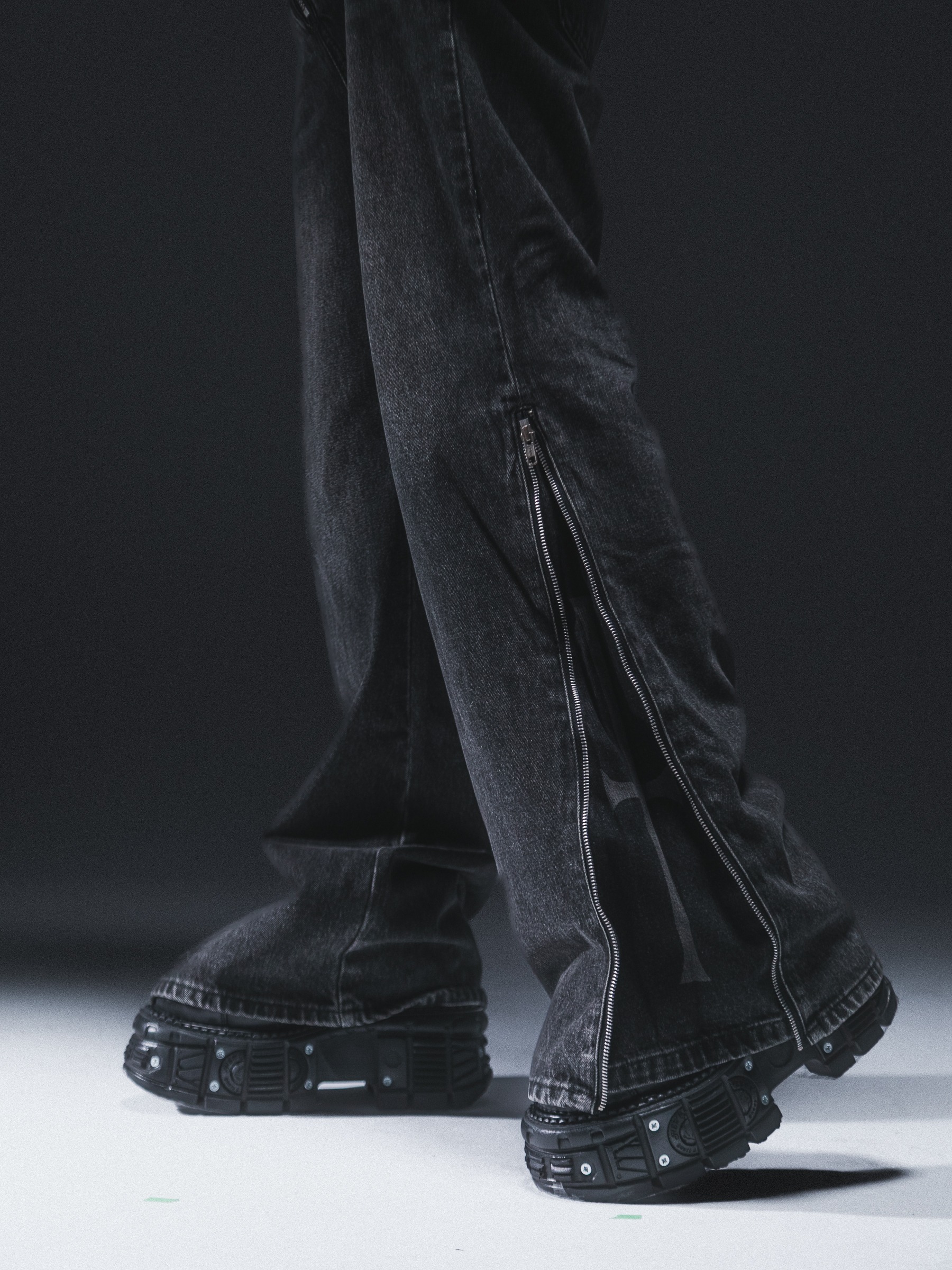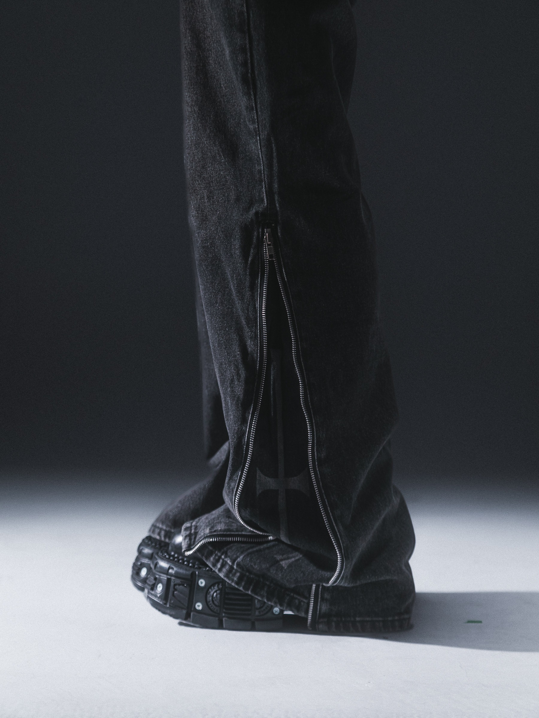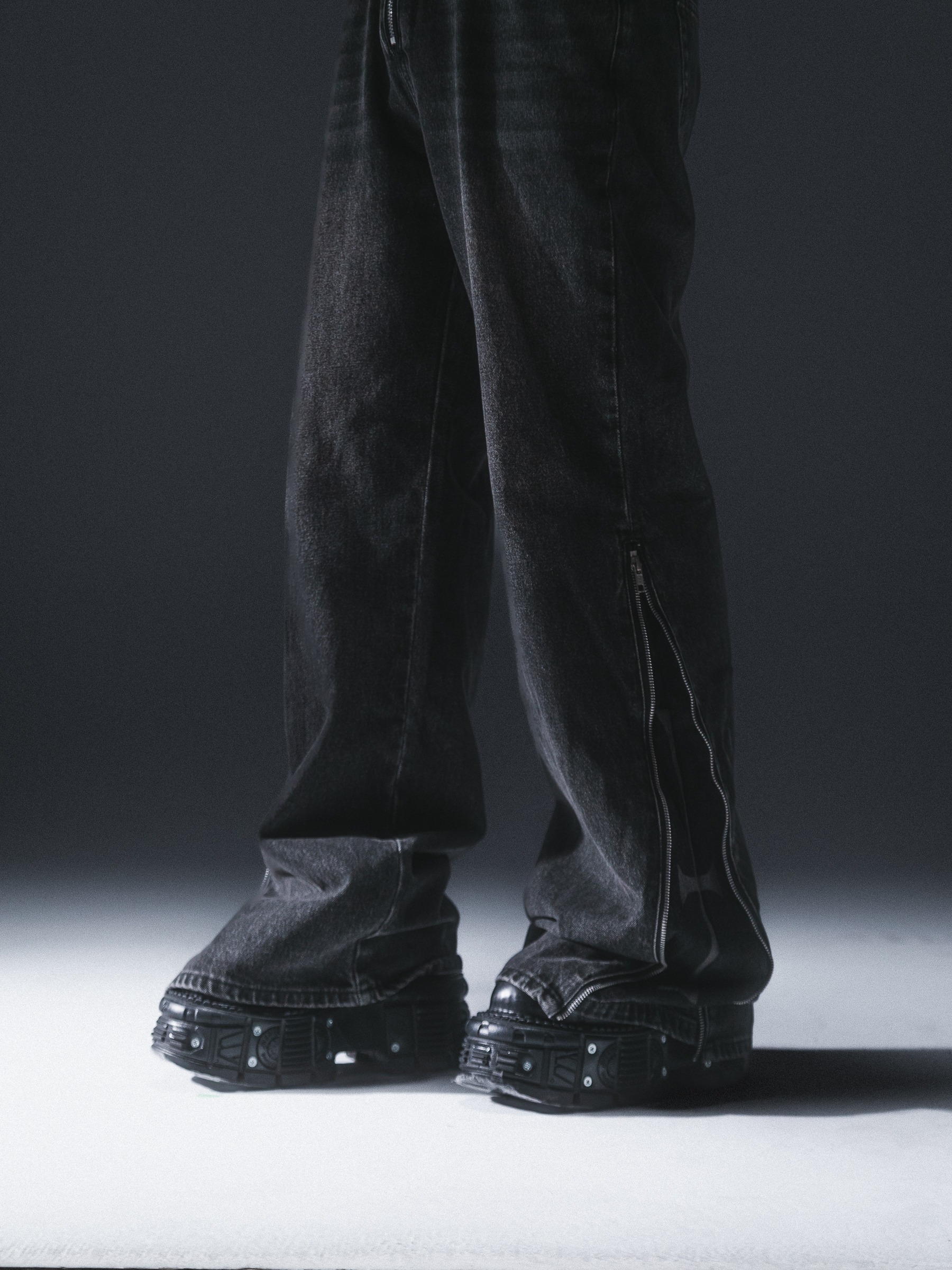· The silhouette of the jeans turns into a flare shape when the side zipper is unzipped
