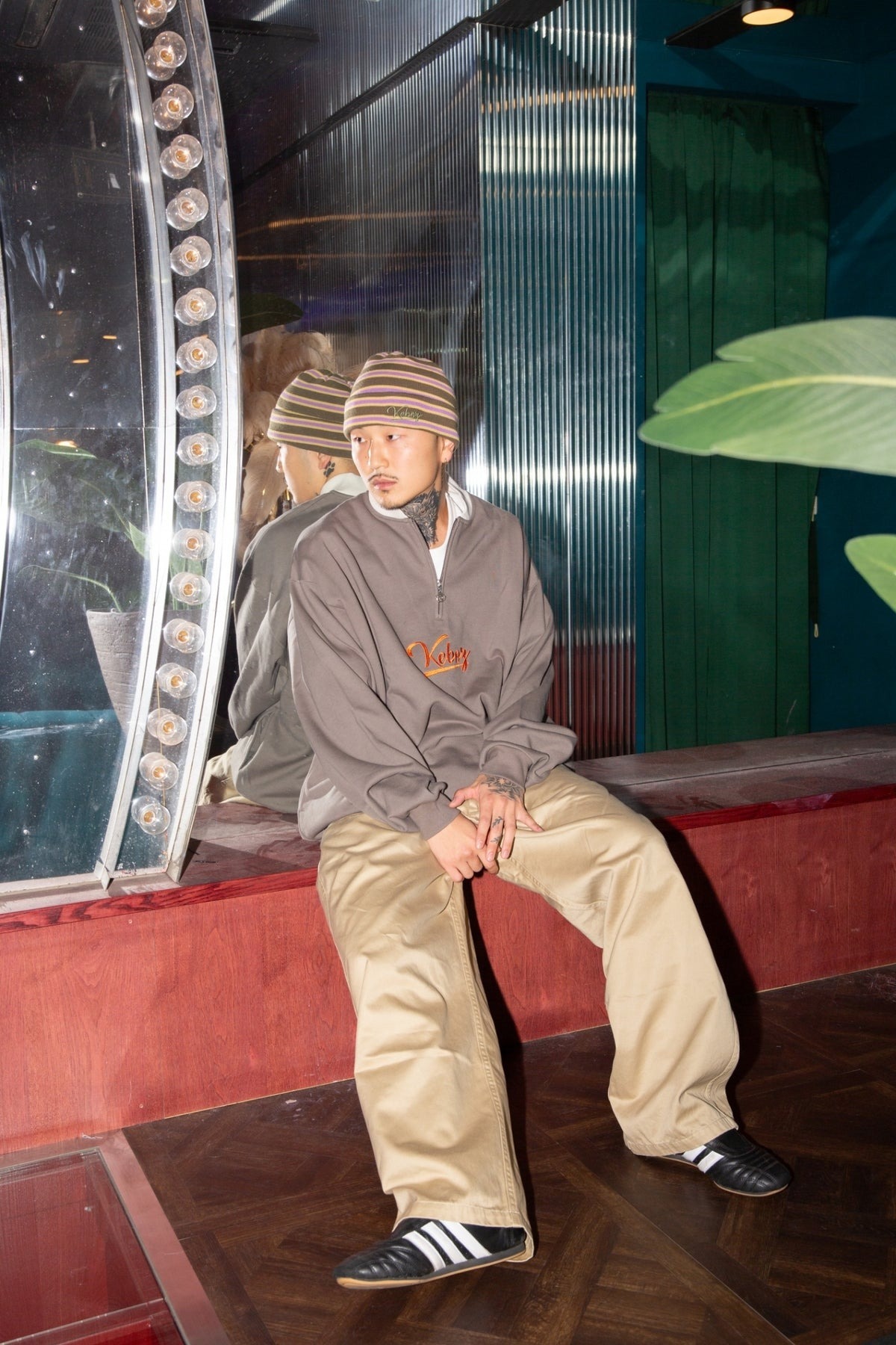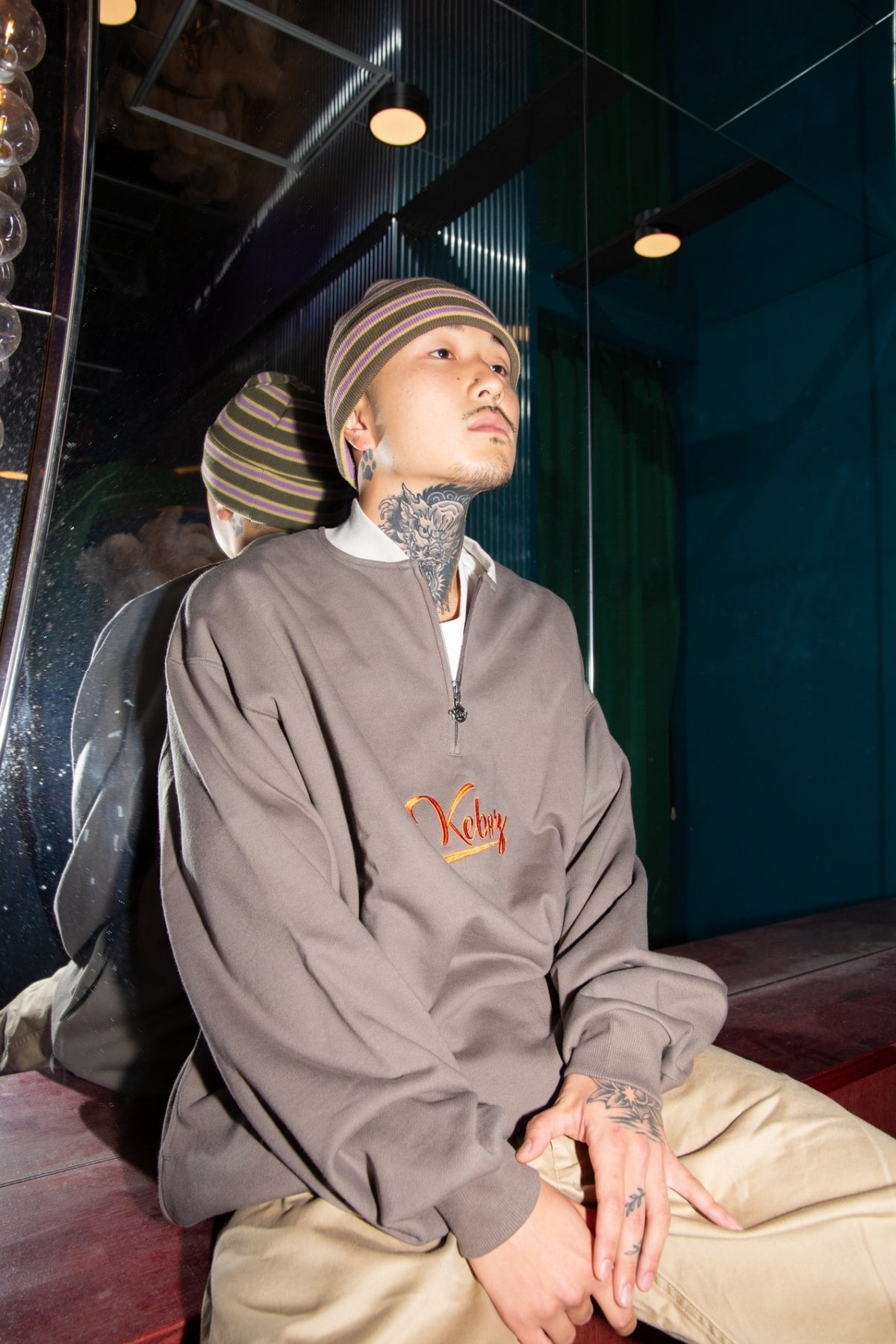 • スウェット生地を使用したハーフジップタイプのバーシティジャケット