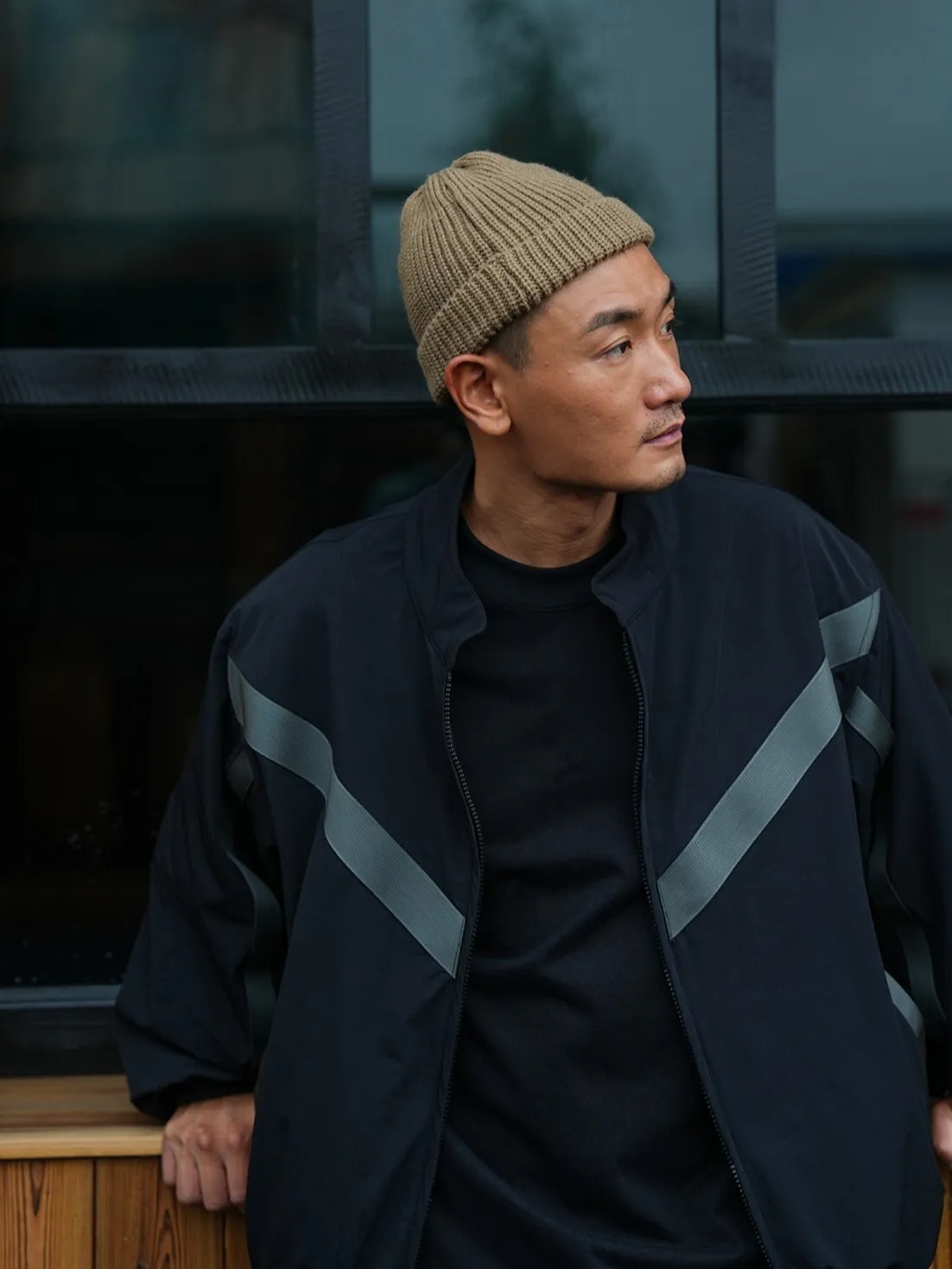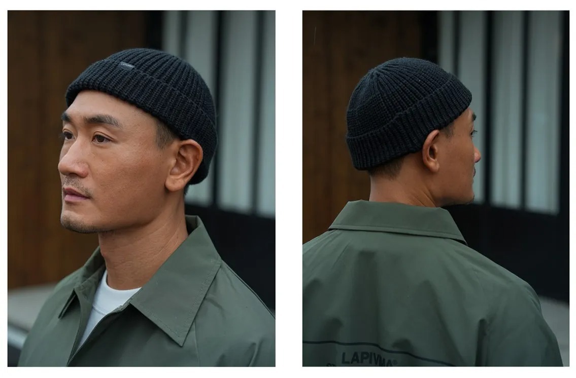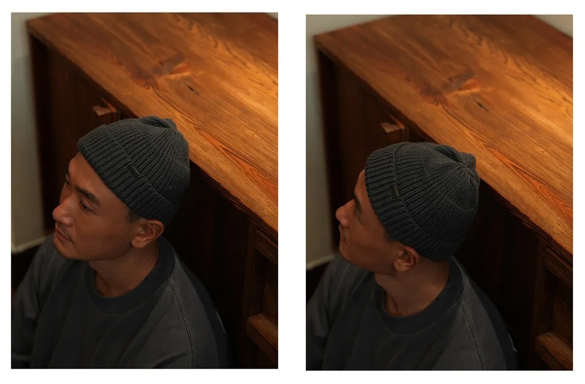 TRI-RIB BEANIE 三重坑條瓜皮帽 薄帽簷設計、較適合頭圍較大的使用者使用抽針工藝令帽子,有粗細不同的兩種坑條兩種鬆緊效果,使帽型更好更貼合頭部。