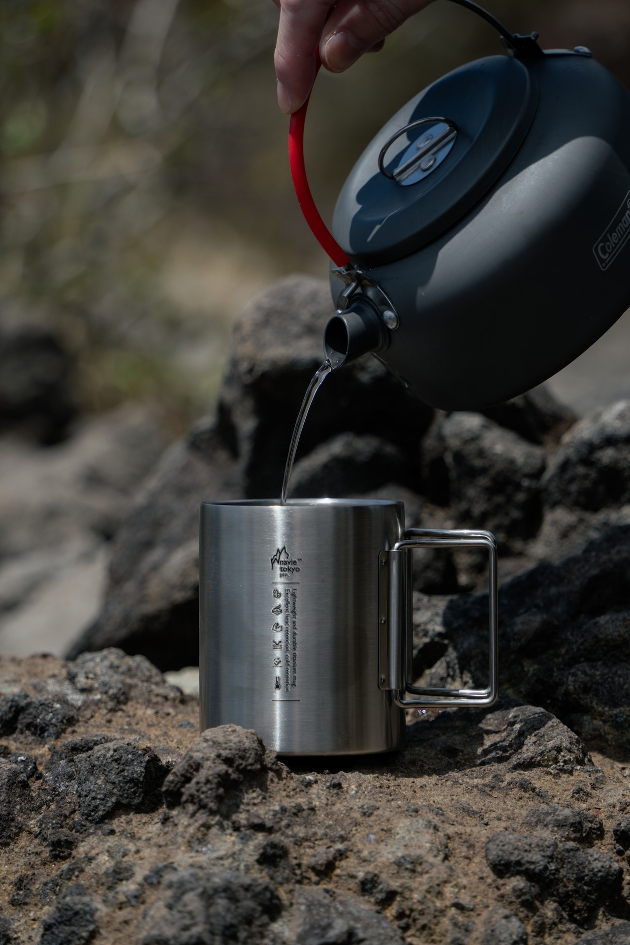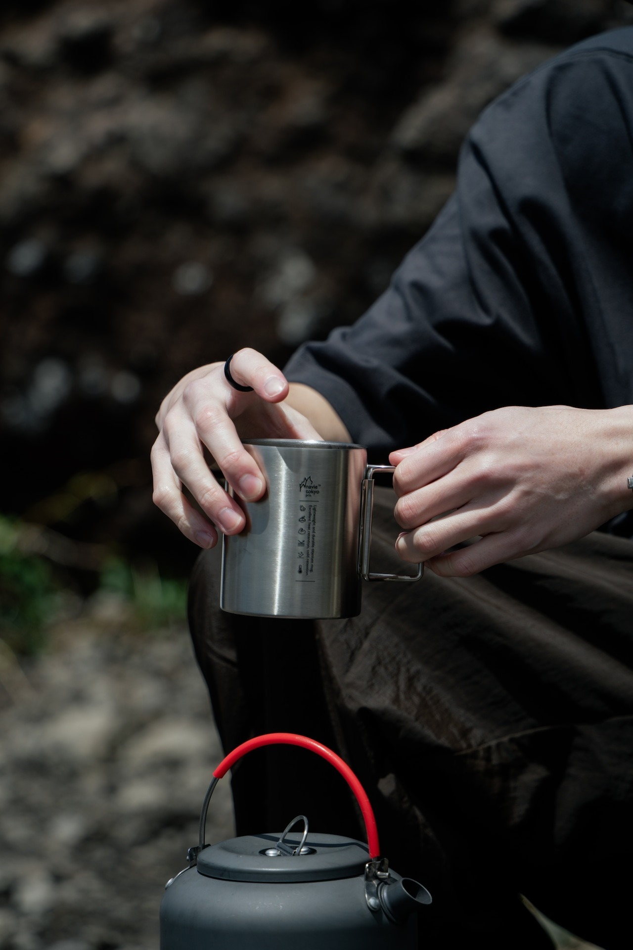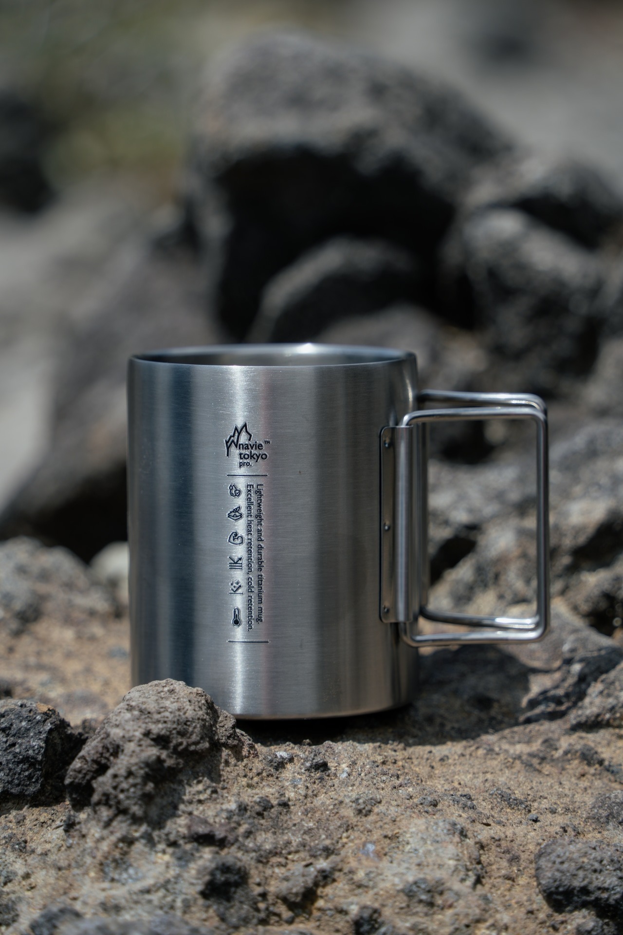 架空のアウトドアメーカー "navietokyo pro" より、取っ手が折り畳み可能なステンレスマグが登場。