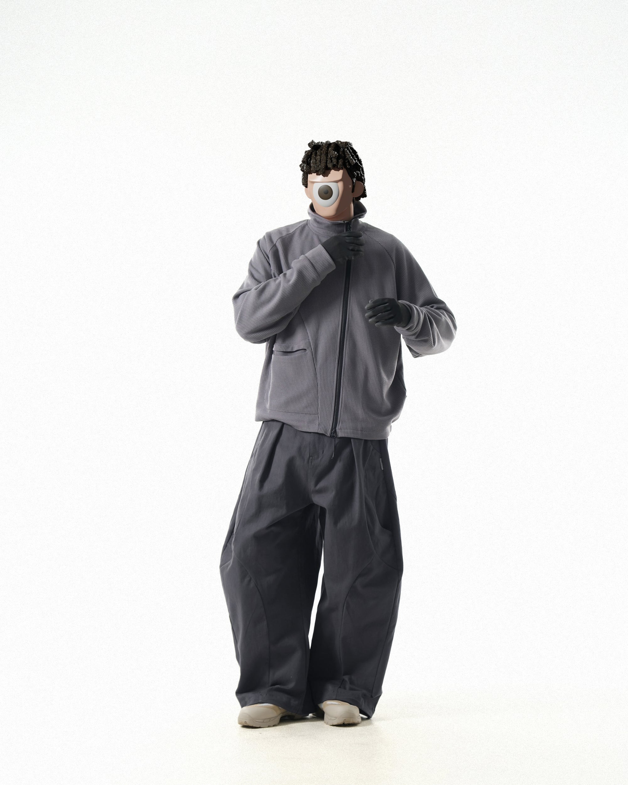 弧線導流,將外套語法簡化成一條乾淨的軌跡。