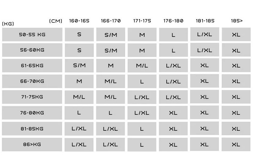 SIZE CHART: