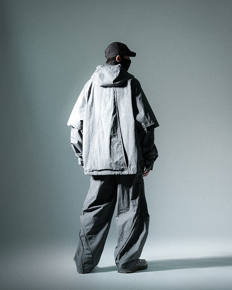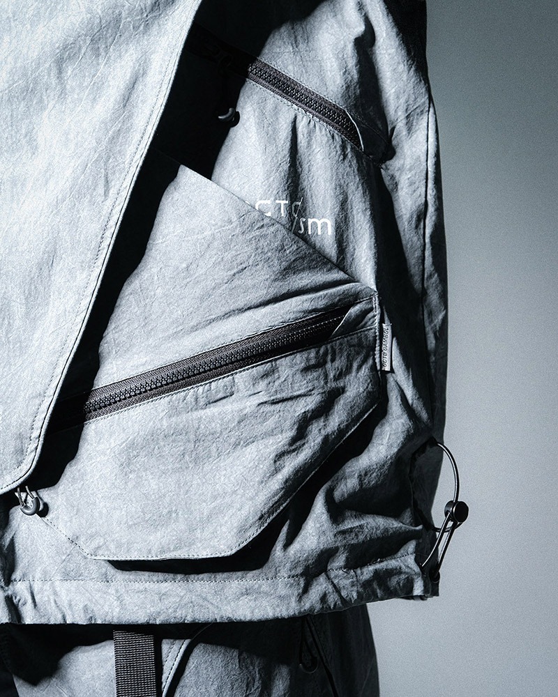 擴展空間為設計概念,雙邊口袋以擴展式的設計來帶到大家的眼前,成為同時具備空間、穩定收納的單品,並利用層次堆疊呈現靈活擴充,以我們極少嘗試的洗水工藝傳達〔擴展〕的概念,同時營造輕盈簡潔的視覺效果。揹帶方面,本次也應用一體式單肩設計,取替外置揹帶的累贅感。