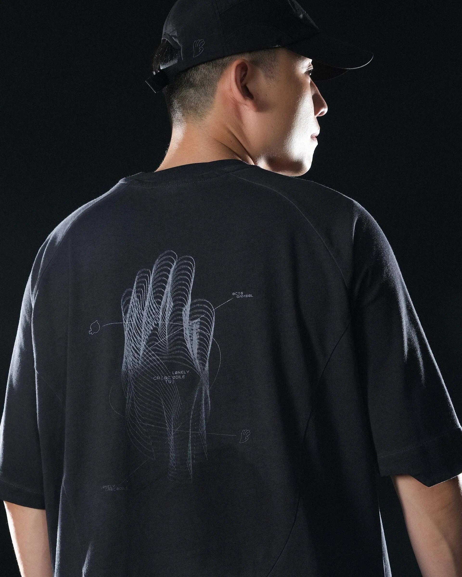 >背部以Octo x lonely.crocodile聯名LOGO延伸設計,呈現多層次線條動態圖案