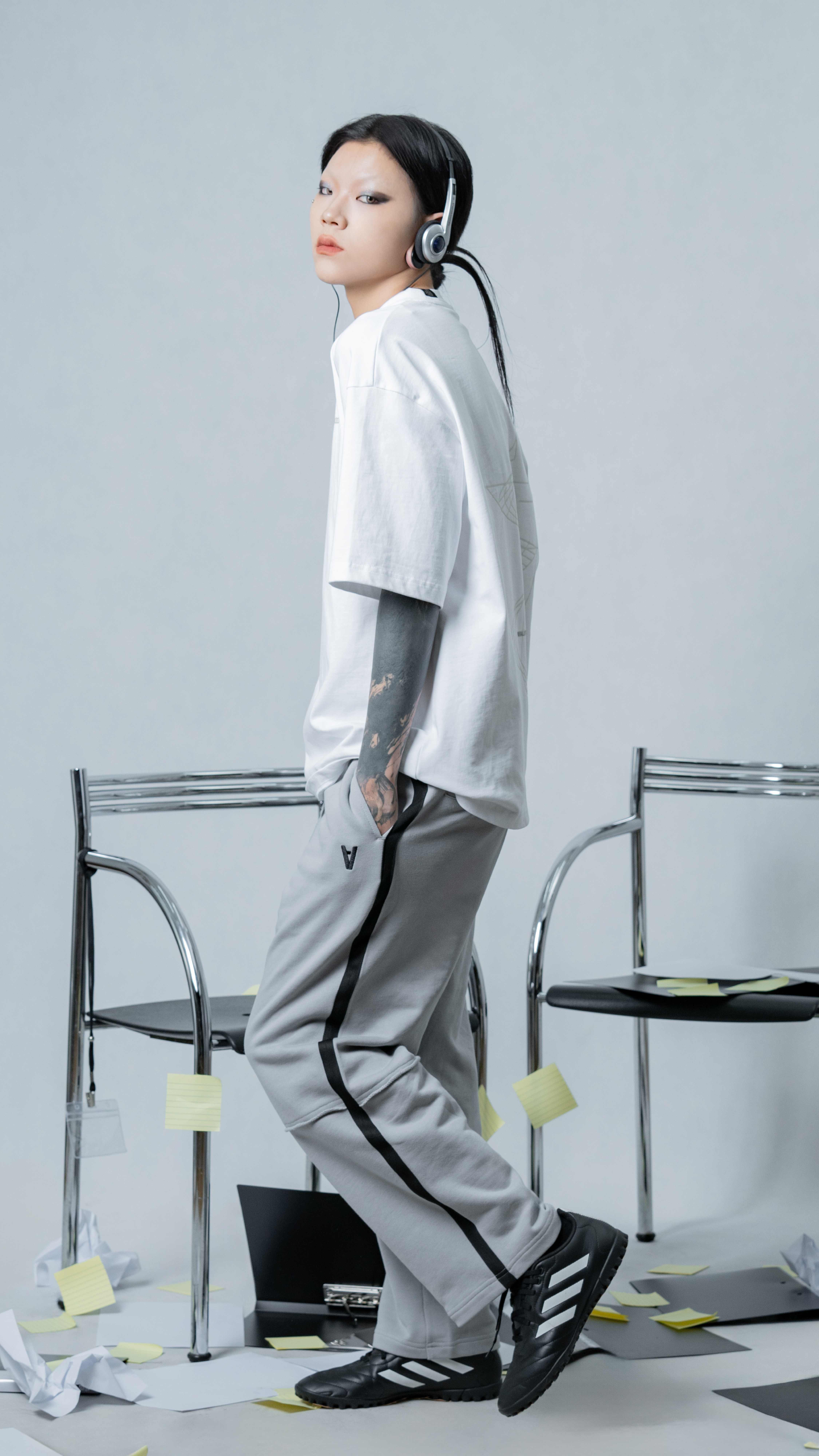 @parallax.tp 24 S/S “DS-1” wide Pants|設計概念|經典寬直筒褲型為架構選用輕盈扎實純棉面料前身採立體同布料縱口剪接體現品牌特殊剪裁的底蘊側身利用異材質尼龍布料拼接達到更好的透氣效果與視覺層次且在腰身處使用全新黑標以天文系列延伸上寬下收的輪廓變得更為立體且俐落舒適、彈性與立體的總和整體融入日常無負擔尺寸:01 / 02 /03ㄧ號 -腰圍79~112、褲長94、襠長26.5、大腿圍33二號 -腰圍82~115、褲長97、襠長28、大腿寬36三號 -腰圍85~118、褲長100、襠長29.5、大腿寬39MODEL:173cm/55kg 著用02號Color:灰色發售日期:2024 / 9 / 1(日)售價:$2580NTD|布料|材質:100% cotton版權所有Copyright © 2019 Parallax all rights reserved™#parallax #parallaxtp #cyberpunk
