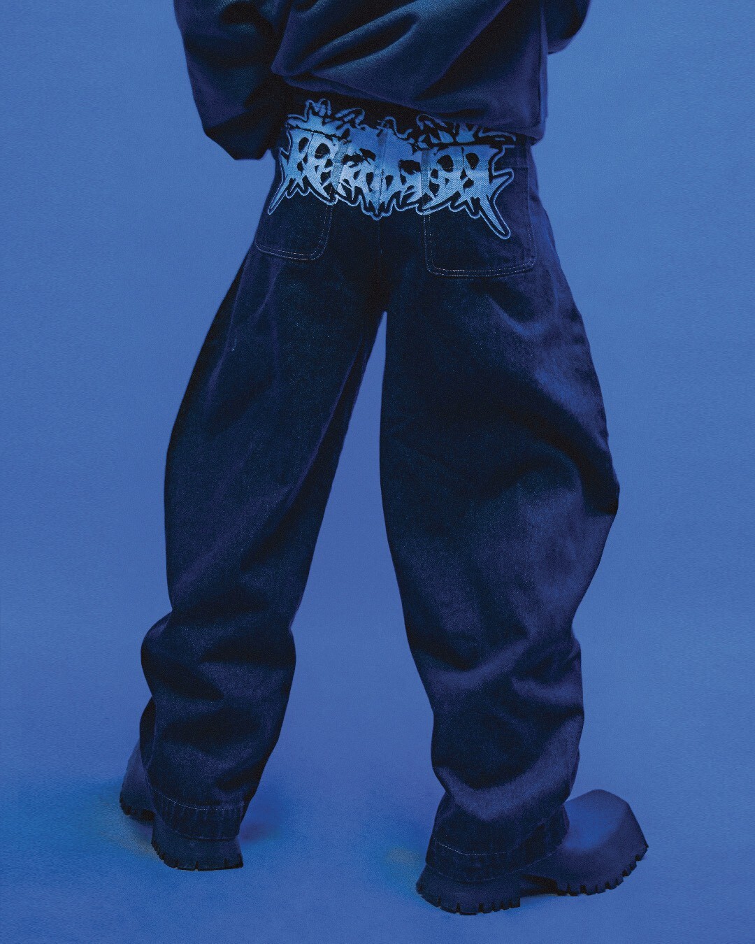 後腰的塗鴉字樣筆觸凌厲、形態自由,將品牌LOGO再次以截然不同的風格呈現。
